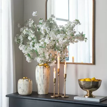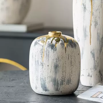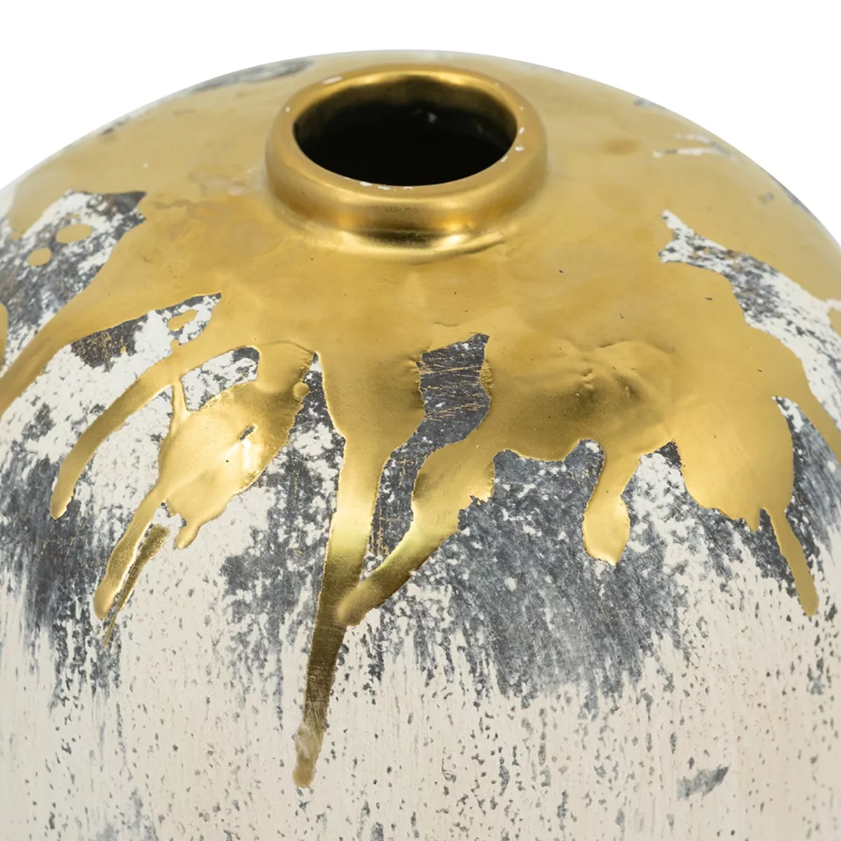 Μπεζ Διακοσμητικό Κεραμικό Βάζο με Χρυσές Λεπτομέρειες