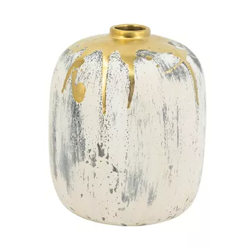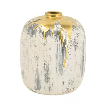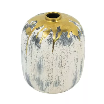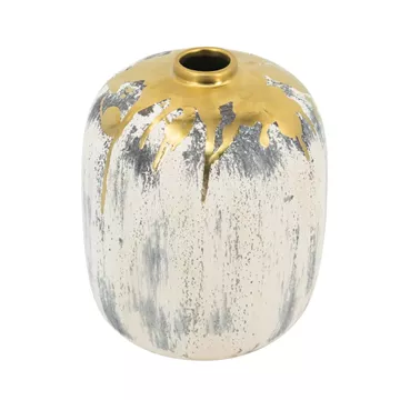 Artekko Kayle Μπεζ Διακοσμητικό Κεραμικό Βάζο με Χρυσές Λεπτομέρειες (16x16x20)cm