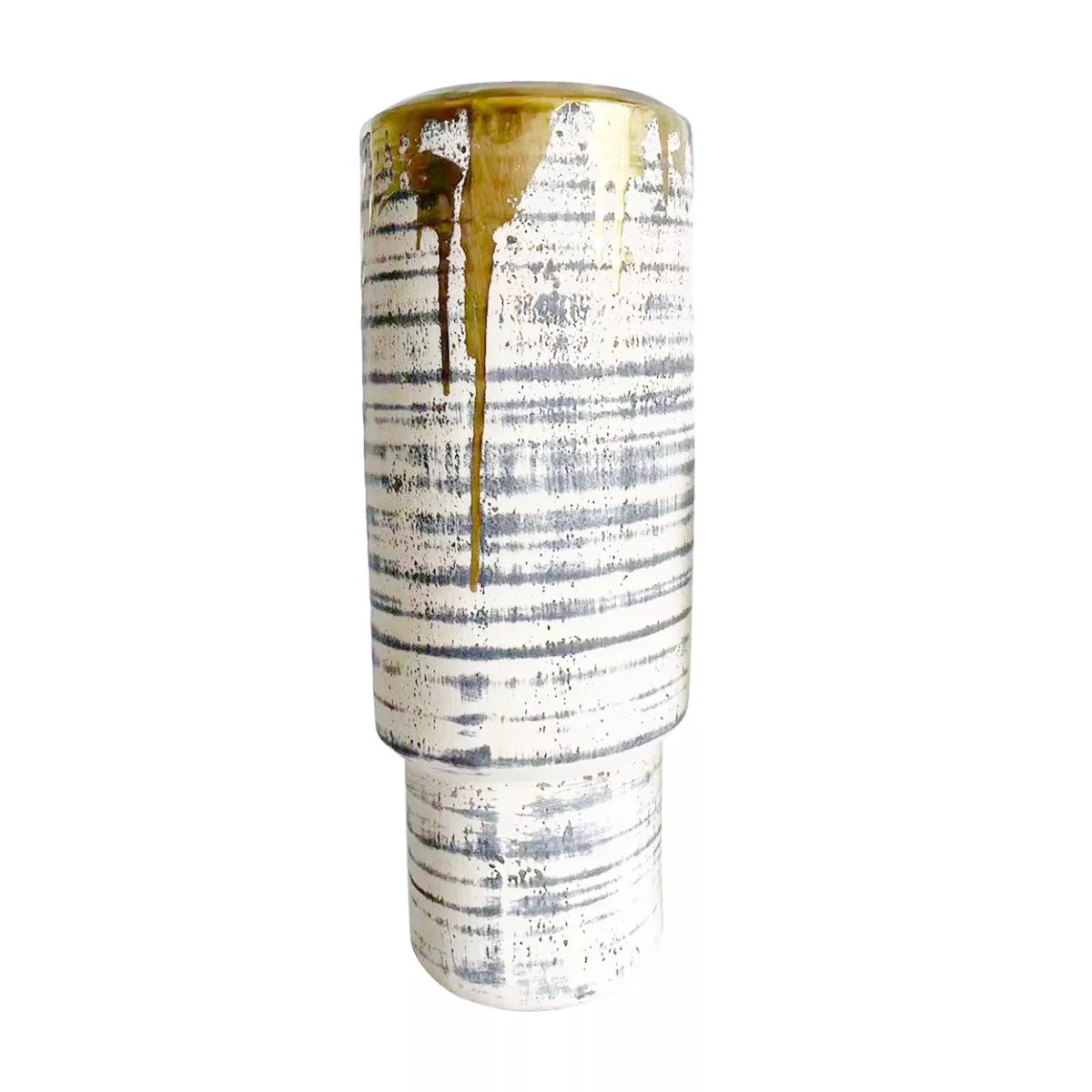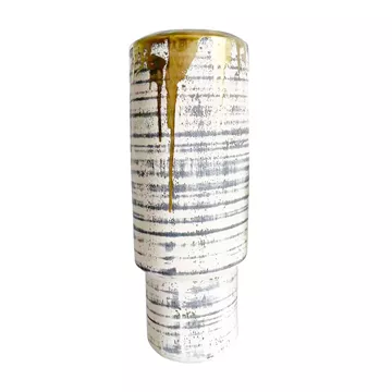 Artekko Kayle Μπεζ Διακοσμητικό Κεραμικό Βάζο με Χρυσό (15x15x40)cm