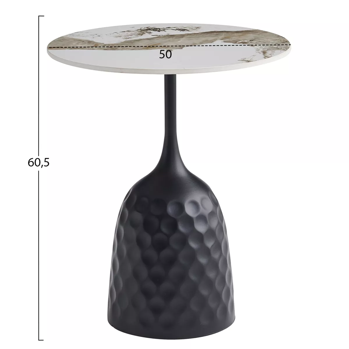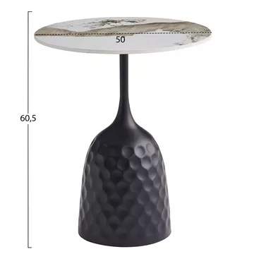 Το LONGSTEM είναι ένα εντυπωσιακό τραπέζι που θα κοσμήσει το σαλόνι σας. Η ψηλή κυλινδρική του βάση είναι μεταλλική με διάστικτη τεχνοτροπία σε ΜΑΥΡΟ χρώμα, ενώ η στρογγυλή επιφάνεια είναι κατασκευασμένη από γυαλιστερό sintered stone σε χρωματικό σχήμα PANDORA. Ιδανικό τόσο για το σπίτι, όσο και για επαγγελματικούς χώρους.