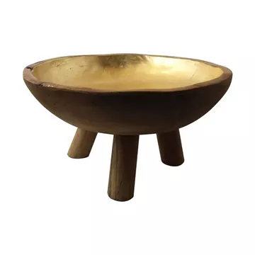 Ξύλινο Διακοσμητικό Μπολ σε Φυσική Απόχρωση με Χρυσό