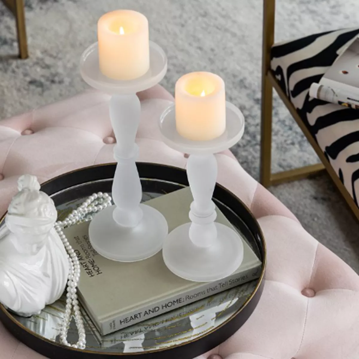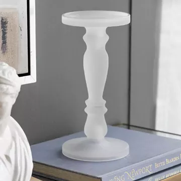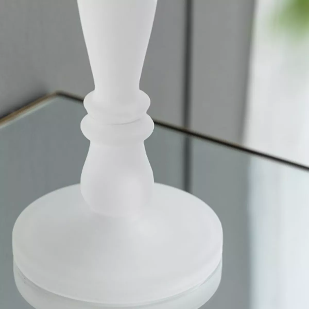 Artekko Frosted Γυάλινο Λευκό Κηροπήγιο (13x13x35.5)cm 2psc