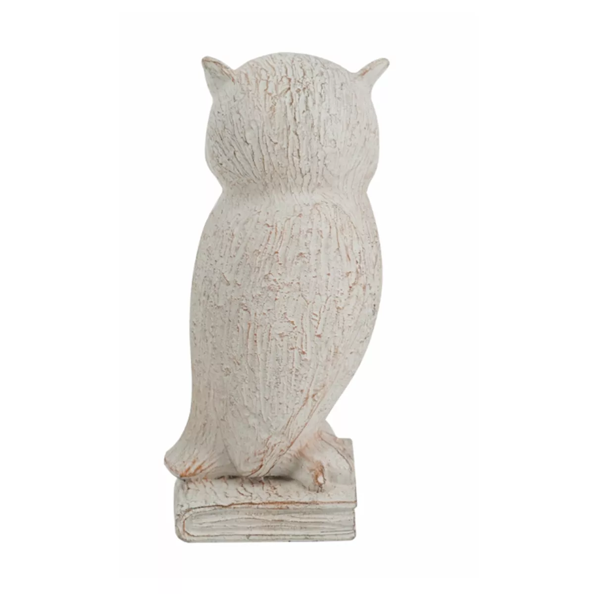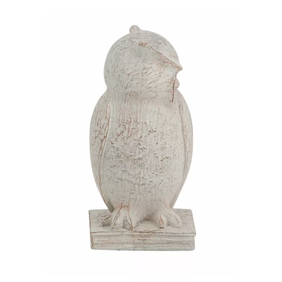 Artekko Owl Διακοσμητική Κουκουβάγια Ρητίνης σε Λευκή Πατίνα (10.5x9.5x20)cm
