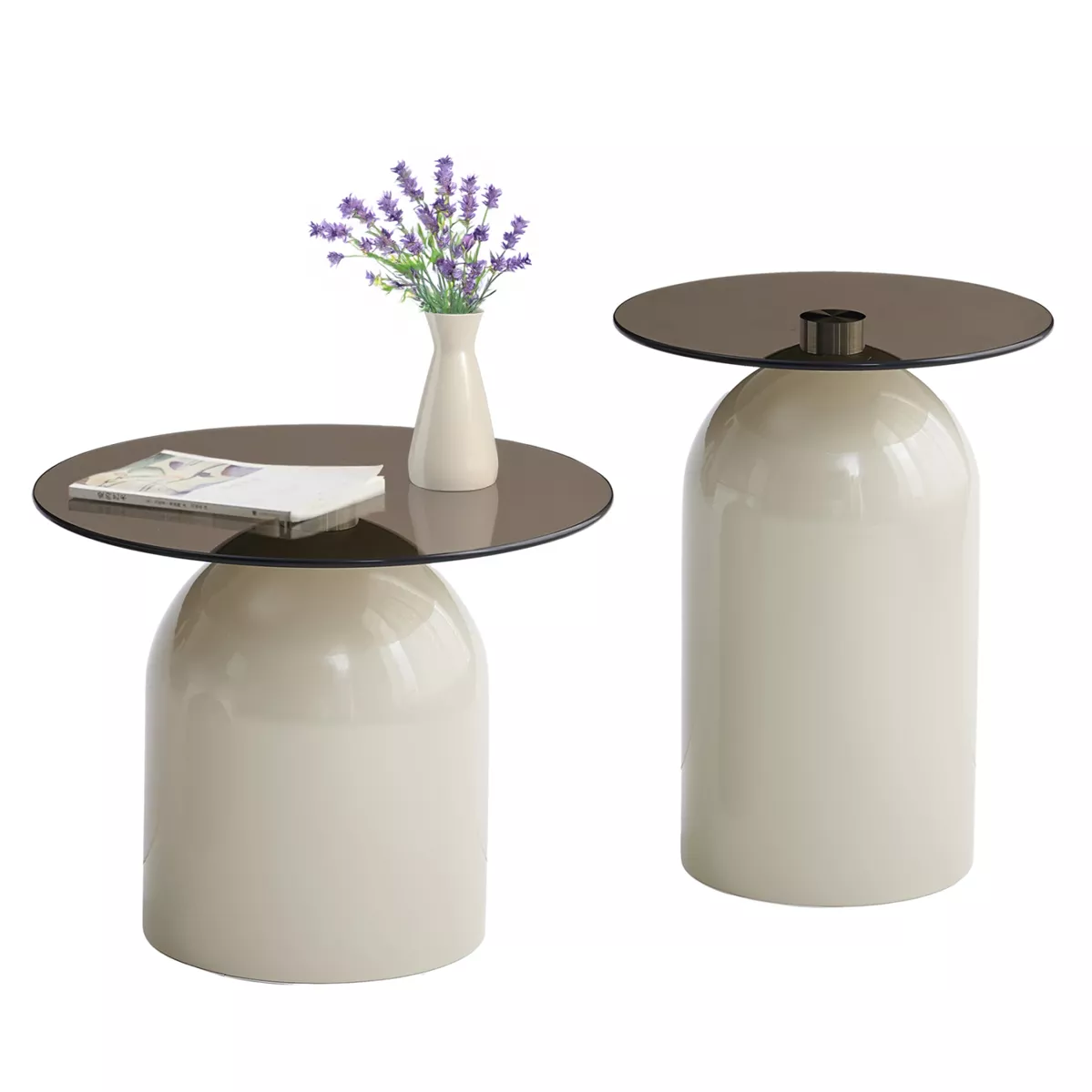 Τα BELLINS είναι ένα σετ 2 τραπεζιών για το σαλόνι σε διαφορετικές διαστάσεις και σε ΜΠΕΖ χρώμα με ελαφρώς σκούρη γυάλινη επιφάνεια. Κατασκευασμένα με κορυφαία ποιότητα υλικών και με τέλειο φινίρισμα, αυτά τα 2 στρογγυλά τραπεζάκια θα δώσουν μια «νότα» ανανέωσης στο χώρο σας.
