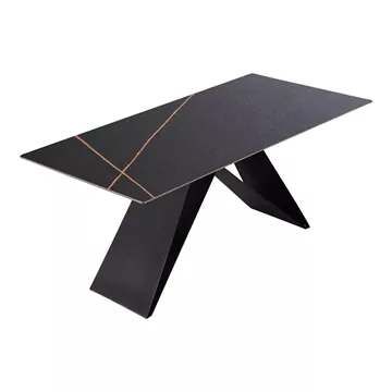 Αυτό το τραπέζι είναι ένα αριστούργημα του σύγχρονου σχεδιασμού, που συνδυάζει την κομψότητα της πυροσυσσωματωμένης πέτρας με την αισθητική του μετάλλου.Η διαδικασία σχηματισμού αυτής της ειδικής πέτρας δημιουργεί επιφάνειες με μοναδικό χαρακτηριστικό την όψη μαρμάρου όπου το καθιστούν το επίκεντρο σε κάθε χώρο, ενώ η αντοχή του εξασφαλίζει ότι θα σας συντροφεύει για μια ζωή.