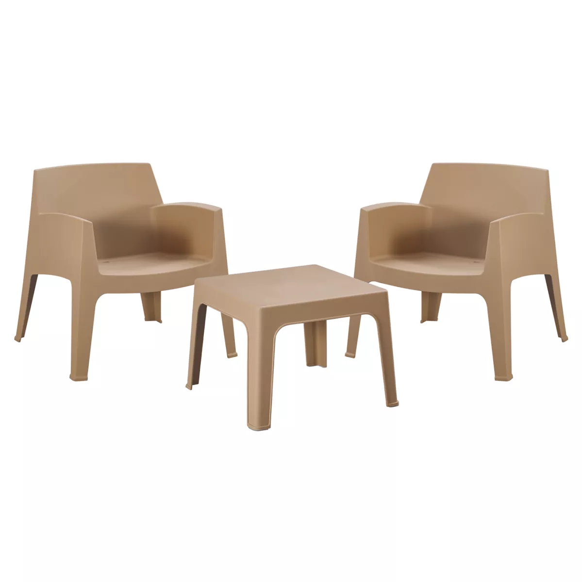 -1 τετράγωνο τραπεζάκι από χυτό πολυπροπυλένιο, όλα σε ΚΑΠΟΥΤΣΙΝΟ χρώμα.