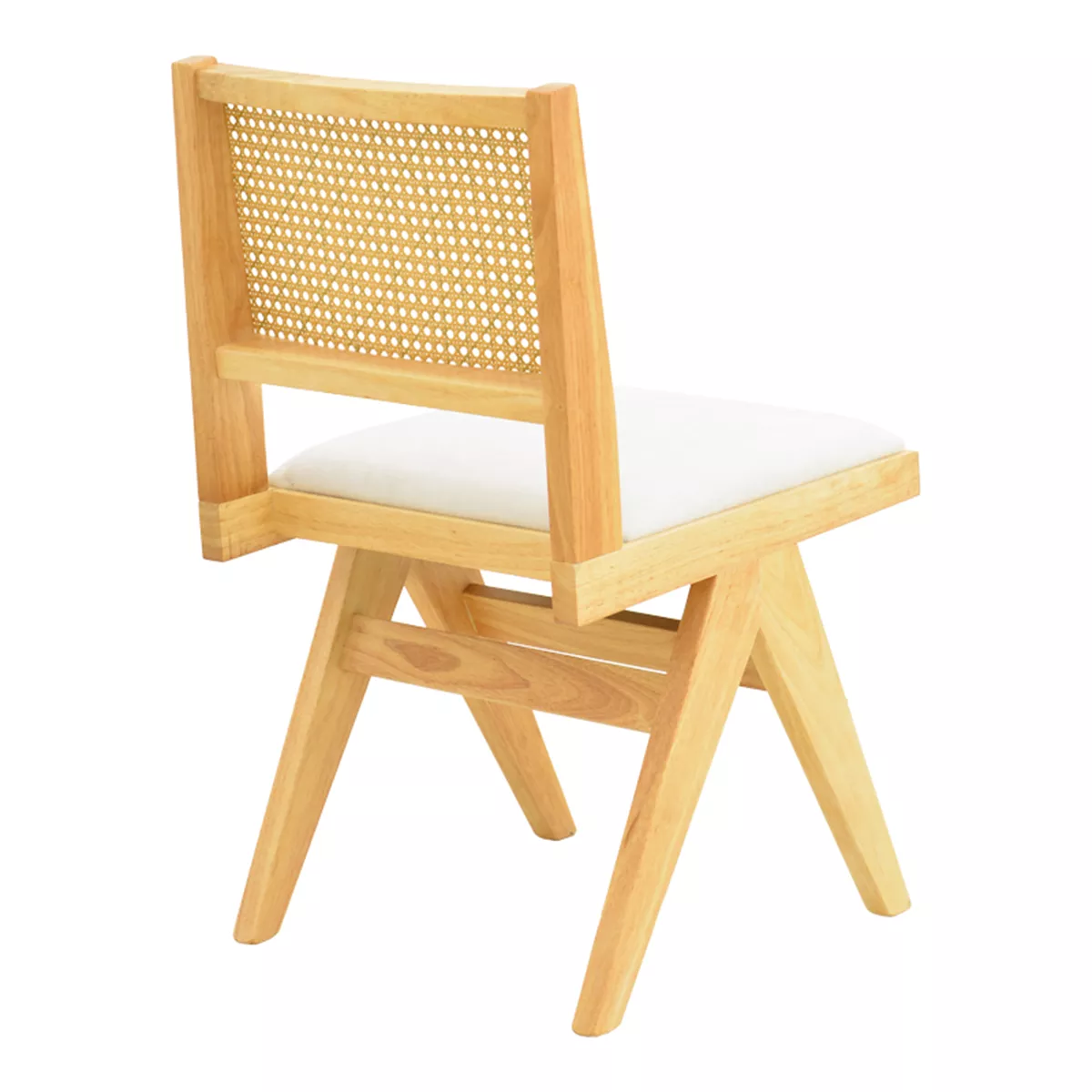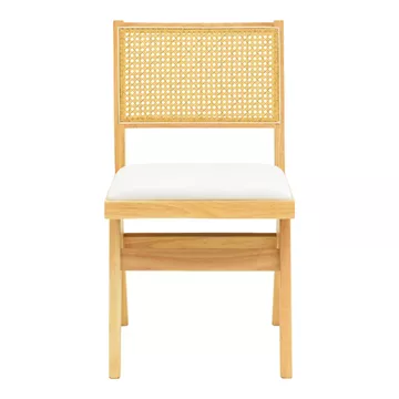 Καρέκλα Winslow κατασκευασμένη από φυσικό ξύλο rubberwood, επενδεδυμένη με ύφασμα και pvc rattan.
