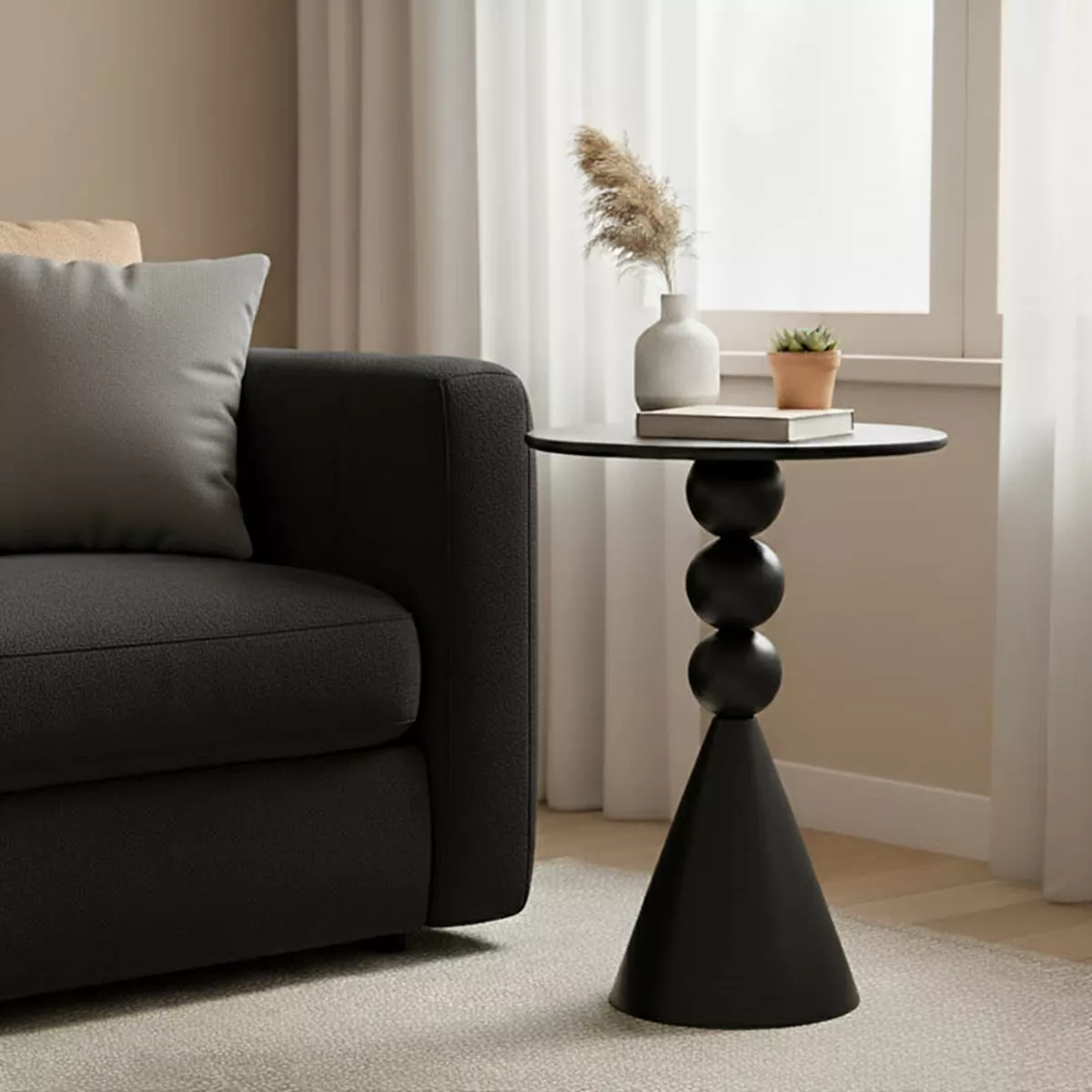 Το Bilane δεν είναι απλά ένα λειτουργικό αντικείμενο, αλλά ένα οπτικό highlight. Η πρωτότυπη βάση του, που συνδυάζει μια κωνική μορφή με τρεις διακοσμητικές σφαίρες, δημιουργεί μια παιχνιδιάρικη αλλά ταυτόχρονα σοφιστικέ σιλουέτα. Η στρογγυλή επιφάνειά του είναι ιδανική για να φιλοξενήσει το καφέ σας, ένα μικρό βάζο με λουλούδια, τα αγαπημένα σας βιβλία ή ένα διακοσμητικό αντικείμενο που θέλετε να αναδείξετε.