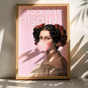 Δώστε έναν παιχνιδιάρικο και ανατρεπτικό τόνο στον χώρο σας με τον εκρηκτικό πίνακα Kister. Αυτό το έργο συνδυάζει ένα κλασικό πορτρέτο γυναίκας με μία bubblegum τσίχλα και ένα μοντέρνο, Pop-Art μήνυμα: "KISS ME AGAIN" (Φίλησέ με ξανά), γραμμένο με έντονα ροζ γράμματα. Είναι το απόλυτο statement piece για να εκφράσετε αυτοπεποίθηση, χιούμορ και εκλεπτυσμένο στυλ.