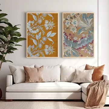 Εισάγετε στον χώρο σας τη νοσταλγική γοητεία ενός κήπου σε πλήρη άνθιση. Το δίπτυχο Fanea είναι μία αισθητική δήλωση που αναπαριστά έντονα βοτανικά και λουλουδάτα μοτίβα, υπενθυμίζοντας την αισθητική των vintage υφασμάτων ή ταπετσαριών. Κάθε φορά που εστιάζετε στην πλούσια λεπτομέρεια και τον δραματικό συνδυασμό χρωμάτων, νιώθετε μια αίσθηση ζωής, έντασης και εκλεπτυσμένης πολυτέλειας. Το έργο συμβολίζει τη φυσική αφθονία, τη διαχρονική κομψότητα και τη γοητεία του μοντέρνου Bohemian στυλ.
