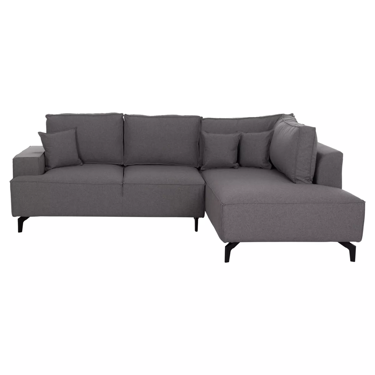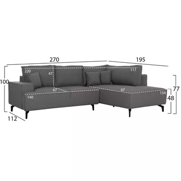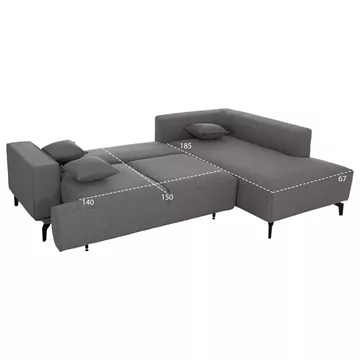 Ο SAFFIRA είναι ένας όμορφος και πρακτικός γωνιακός καναπές-κρεβάτι (ΔΕΞΙΑ ΓΩΝΙΑ). Η επένδυσή του είναι με εξαιρετικής ποιότητας ΓΚΡΙ ύφασμα και τα πόδια είναι ψηλά από ενισχυμένο πολυαιθυλένιο σε ΜΑΥΡΟ χρώμα. Διαθέτει 4 μεγάλα μαξιλάρια πλάτης και 3 μικρότερα διακοσμητικά. Το κρεβάτι σχηματίζεται τραβώντας το κάθισμα του κυρίως καναπέ, «ρίχνοντας» ταυτόχρονα την κοντή πλάτη, ενώ διαθέτει και ένα επιπλέον πόδι για μεγαλύτερη στιβαρότητα. Εκεί ακριβώς δημιουργείται και ένας μικρός αλλά πρακτικός αποθηκευτικός χώρος. Τέλος, το μπράτσο στην αριστερή πλευρά είναι φαρδύ και άνετο, ολοκληρώνοντας με τον καλύτερο τρόπο την απαράμιλλη πρακτικότητα αυτού του υπέροχου καναπέ.