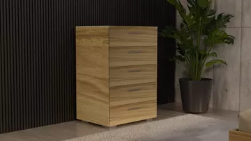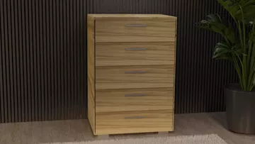 Συρταριέρα ελληνικής προέλευσης, η οποία αποτελείται από 5 συρτάρια με μεταλλικά χερούλια inox. Κατασκευασμένη από πιστοποιημένη μοριοσανίδα υψηλής ποιότητας με επικάλυψη μελαμίνης, είναι ιδανική για χώρους περιορισμένων διαστάσεων καθώς μπορείτε να διακοσμήσετε και να δώσετε μια διαφορετική πνοή στο δωμάτιο. <strong>Διαστάσεις (σε εκατοστά):</strong> <strong>Μήκος:</strong> 60 <span data-style="line-height: 1.5;"><strong>Βάθος:</strong> 45 </span><strong>Ύψος:</strong> 90 <strong>Σημειώσεις: </strong>Το προϊόν παραδίδεται μονταρισμένο, όπως απεικονίζεται στην φωτογραφία. <em>Ενδέχεται να υπάρξει μικρή διαφορά στο χρώμα, λόγω φωτεινότητας της φωτογραφίας.</em>