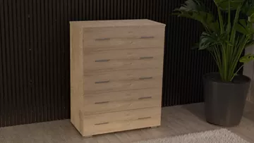 Συρταριέρα ελληνικής κατασκευής, με 5 βαθιά ευρύχωρα συρτάρια και μεταλλικά χερούλια inox υψηλής αντοχής. Κατασκευασμένη από πιστοποιημένη μοριοσανίδα άριστης ποιότητας με επικάλυψη ανθεκτικής μελαμίνης, προσφέρει ανθεκτικότητα και κομψό φινίρισμα. Χάρη στον λειτουργικό και λιτό σχεδιασμό της, αποτελεί ιδανική επιλογή, προσθέτοντας παράλληλα αισθητική και πρακτικότητα στο δωμάτιο. <strong>Διαστάσεις (σε εκατοστά):</strong> <strong>Μήκος: </strong>90 <span data-style="line-height: 1.5;"><strong>Βάθος:</strong> 45 </span><strong>Ύψος:</strong> 117 <strong>Σημειώσεις: </strong>Το προϊόν παραδίδεται μονταρισμένο, όπως απεικονίζεται στην φωτογραφία. <em>Ενδέχεται να υπάρξει μικρή διαφορά στο χρώμα, λόγω φωτεινότητας της φωτογραφίας.</em>