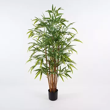 Με τους λεπτούς, ρεαλιστικούς κορμούς του που αναδύονται από τη βάση και τα πυκνά, λαμπερά πράσινα φύλλα του που απλώνονται σε πλούσιο φύλλωμα, αυτό το φυτό είναι μια πραγματική όαση ομορφιάς και φυσικής αύρας.