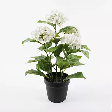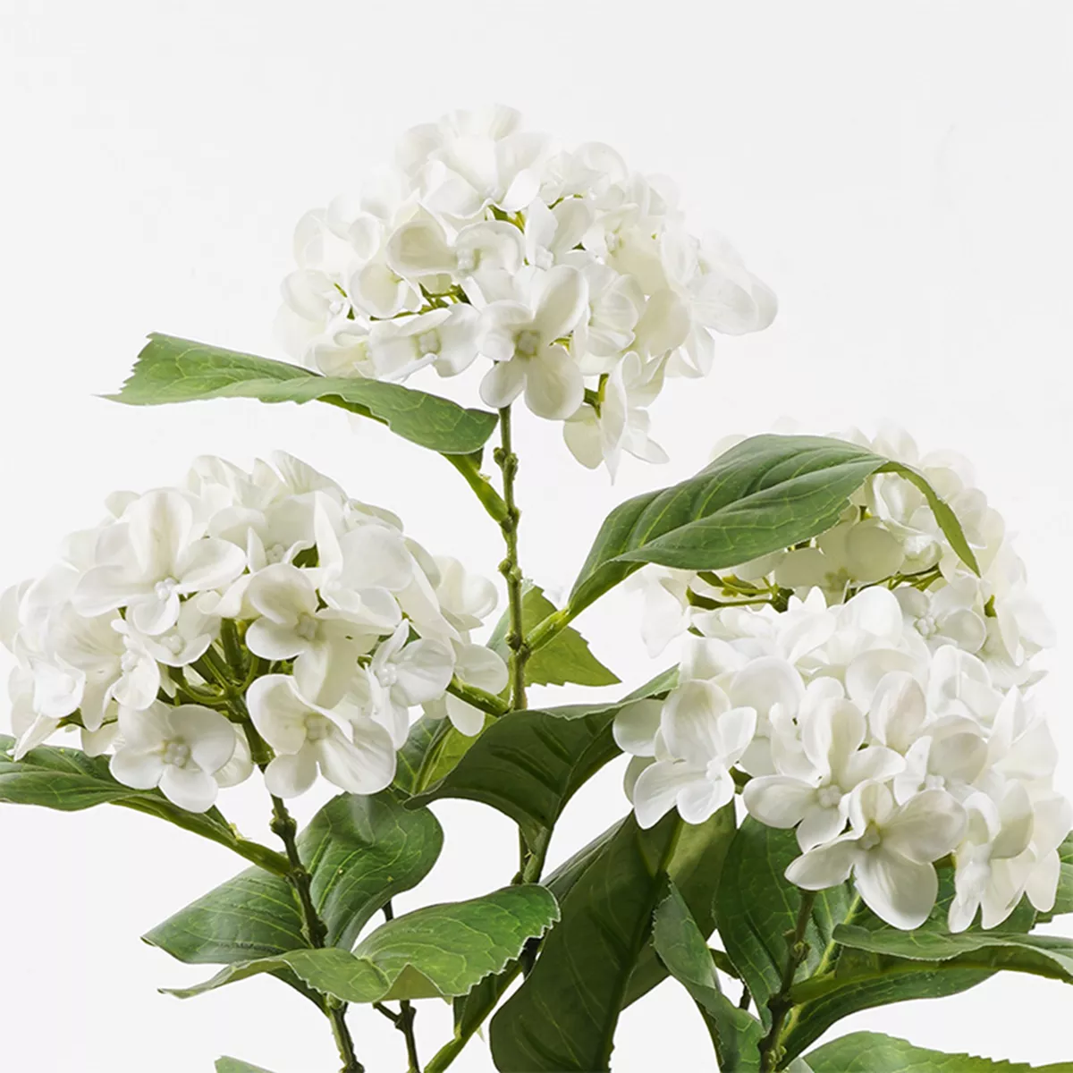 Ορτανσία (Hydrangea) σε εκθαμβωτικό λευκό χρώμα. Με τα πλούσια, ολόλευκα άνθη της και τα ζωντανά πράσινα φύλλα της, αυτή η ορτανσία είναι μια πραγματική όαση ομορφιάς και φινέτσας που θα ανανεώσει κάθε γωνιά του σπιτιού σας.