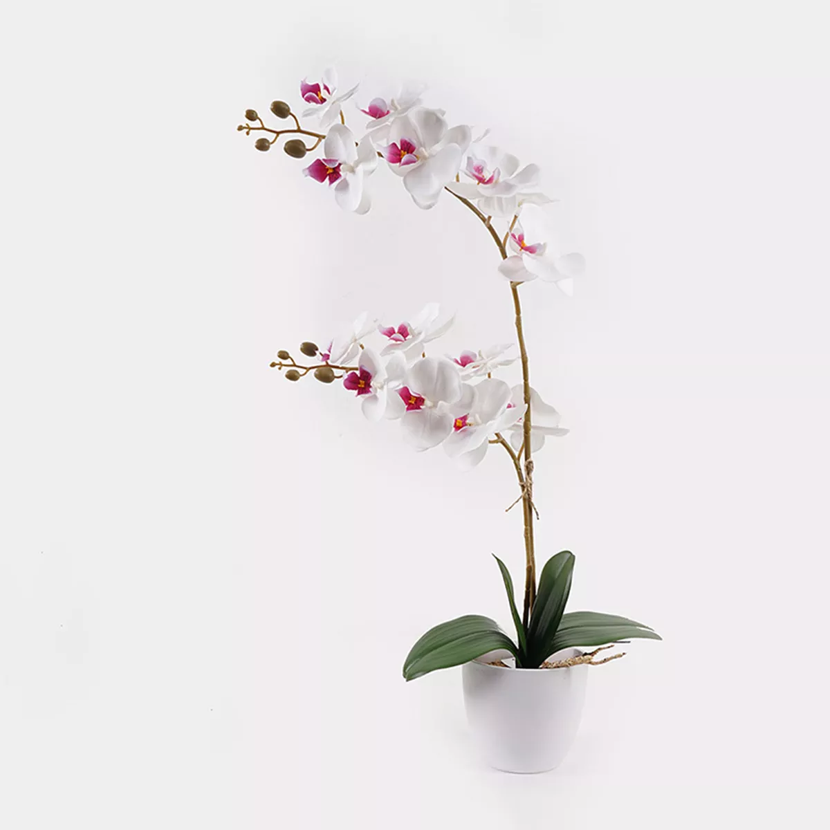 Λατρεύεις την κομψότητα και τη φινέτσα που προσφέρει μια ορχιδέα, αλλά σε αγχώνει η ιδέα της φροντίδας της; Σε καταλαβαίνουμε απόλυτα! Γι' αυτό, φέραμε αυτή την υπέροχη, ορχιδέα σε ένα κλασικό λευκό χρώμα με διακριτικές ροζ/φούξια λεπτομέρειες, που θα ομορφύνει τον χώρο σου χωρίς να χρειάζεται ποτέ πότισμα, ειδικό φως ή... να αγχώνεσαι αν θα μαραθεί!