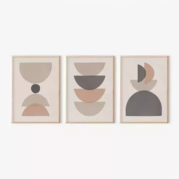 Αναβαθμίστε τον χώρο σας με την απόλυτη ηρεμία του αφηρημένου design: το Τρίπτυχο Derda είναι το ιδανικό στοιχείο για να προσδώσετε έναν minimalist, boho-chic χαρακτήρα στους τοίχους σας. Αυτή η σύνθεση τριών τεμαχίων, ενισχυμένη από ψηφιακές εκτυπώσεις υψηλής ανάλυσης, διαθέτει αφηρημένα μοτίβα με ημικυκλικά και γεωμετρικά σχήματα σε μία ζεστή παλέτα από γήινες, ουδέτερες αποχρώσεις. Μέσα από την αρμονική τους αλληλεπίδραση, δημιουργούν έναν ήρεμο, sophisticated ρυθμό και μία διακριτική αισθητική δήλωση.