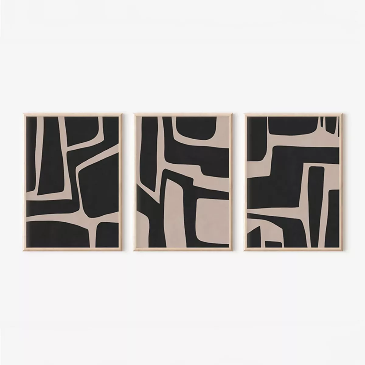 Αναβαθμίστε τον χώρο σας με την αριστοκρατική κομψότητα του σύγχρονου design: το Τρίπτυχο Jelenta είναι το ιδανικό στοιχείο για να προσδώσετε έναν sophisticated, καλλιτεχνικό χαρακτήρα στους τοίχους σας. Αυτή η σύνθεση τριών τεμαχίων, ενισχυμένη από ψηφιακές εκτυπώσεις υψηλής ανάλυσης, διαθέτει αφηρημένα μοτίβα με ρευστικές, ελεύθερες μορφές σε μια κομψή αντίθεση μαύρου και απαλού μπεζ. Μέσα από τη δυναμική τους σύνθεση, δημιουργούν έναν διαχρονικό, πολυτελή οπτικό ρυθμό και μία έντονη αισθητική δήλωση.