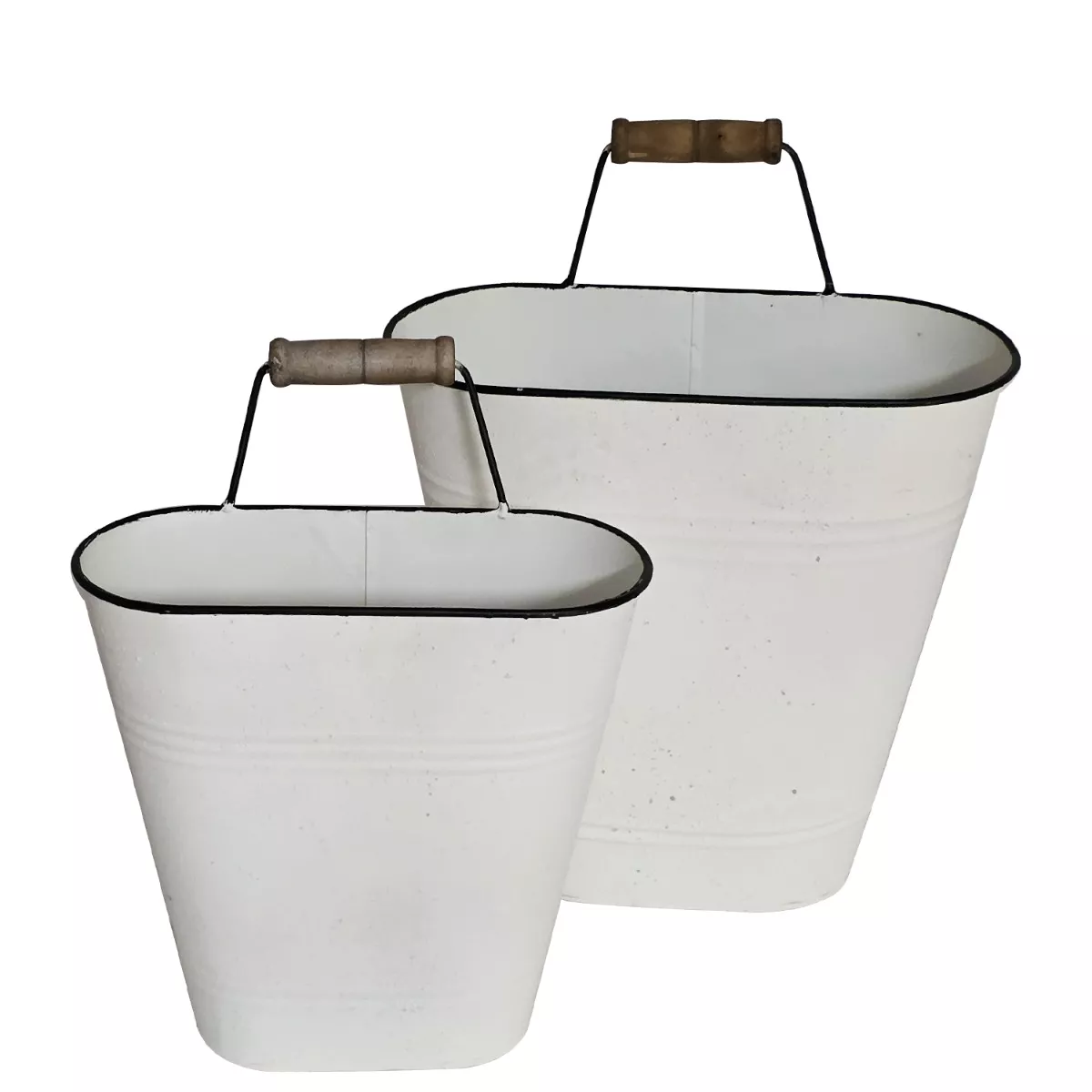 Artekko Planter Μεταλλικά Διακοσμητικά Κουβαδάκια Κασπό σε Λευκή Πατίνα (30x16x37)cm (25x10x30)cm 2pcs