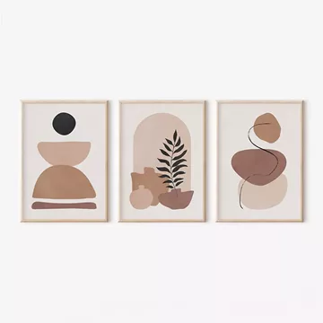 Ανακαλύψτε το τριπτυχικό σετ πινάκων Halona, που συνδυάζει την απλότητα της γεωμετρίας με τη φινέτσα της φυσικής διακόσμησης. Οι συνθέσεις χαρακτηρίζονται από ζεστούς γήινους τόνους και περιλαμβάνουν ένα φυσικό στοιχείο (κλαδί) στο κεντρικό κομμάτι, προσδίδοντας μια ήρεμη και μοντέρνα αισθητική.