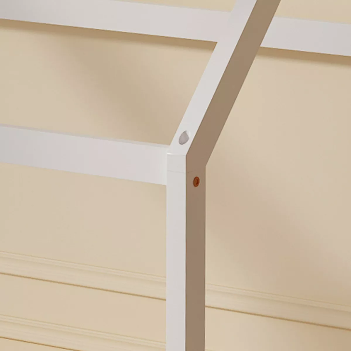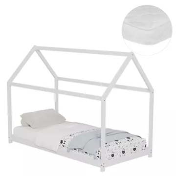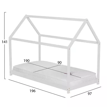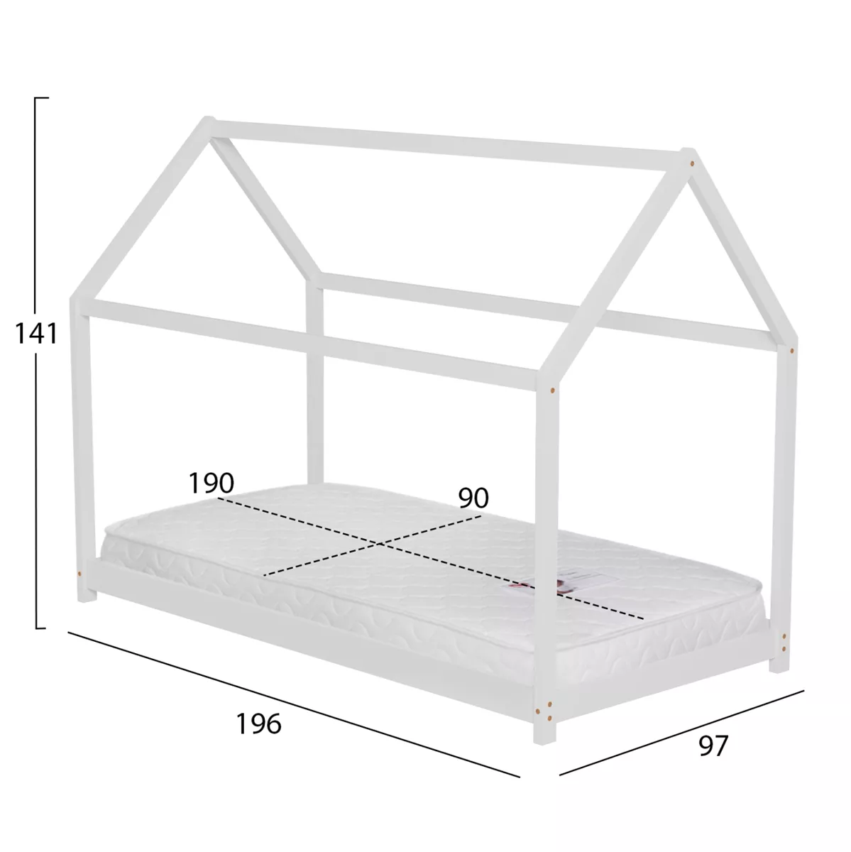 Το παιδικό κρεβάτι PEPE τύπου Montessori σε διάσταση για στρώμα 90x190εκ, είναι κατασκευασμένο από ξύλο πεύκου σε ΛΕΥΚΟ χρώμα. Όλο το κρεβάτι έχει σχήμα σπιτιού με εξαιρετικά χαμηλά πόδια, ενώ το στρώμα τοποθετείται σε τάβλες από κόντρα-πλακέ ξυλεία.