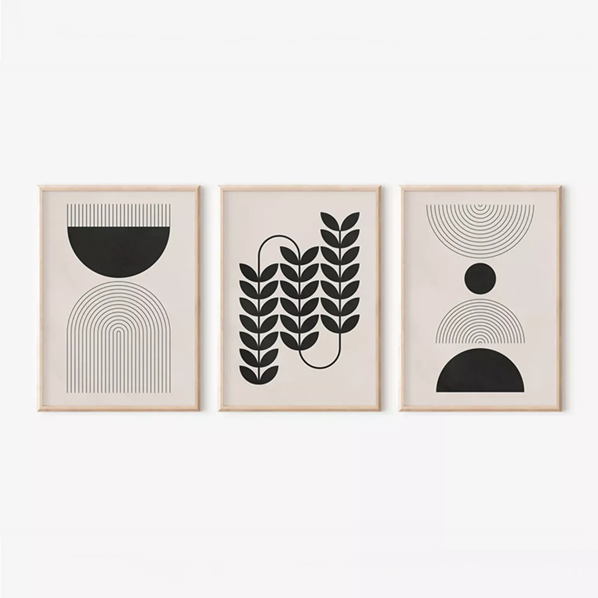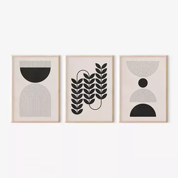 Αναβαθμίστε τον χώρο σας με την εκφραστική δύναμη της αντίθεσης: το Τρίπτυχο Vanta είναι το ιδανικό στοιχείο για να προσδώσετε έναν minimalist, δυναμικό χαρακτήρα στους τοίχους σας. Αυτή η σύνθεση τριών τεμαχίων, ενισχυμένη από ψηφιακές εκτυπώσεις υψηλής ανάλυσης, συνδυάζει έντονα γεωμετρικά σχήματα με τολμηρά, στυλιζαρισμένα βοτανικά μοτίβα σε μια ισχυρή αντίθεση μαύρου και λευκού/μπεζ. Μέσα από την αρμονική τους αλληλεπίδραση, δημιουργούν έναν σύγχρονο, έντονο οπτικό ρυθμό και μία ξεχωριστή αισθητική δήλωση.