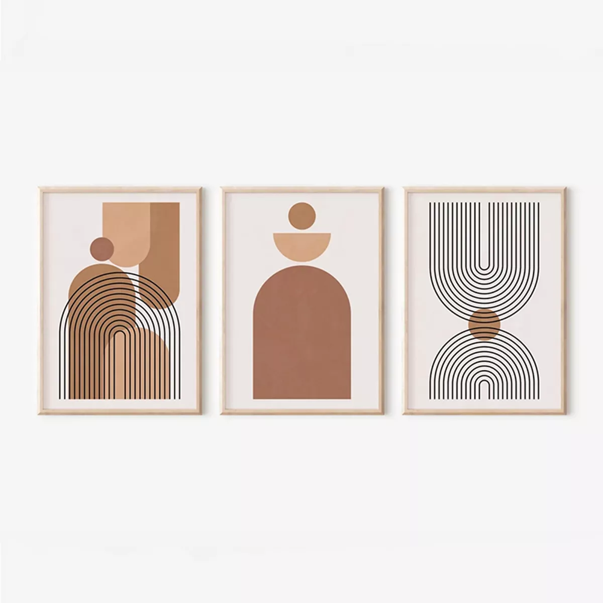 Αναβαθμίστε τον χώρο σας με την οπτική δύναμη του μοτίβου: το Τρίπτυχο Rexion είναι το ιδανικό στοιχείο για να προσδώσετε έναν minimalist, δυναμικό χαρακτήρα στους τοίχους σας. Αυτή η σύνθεση τριών τεμαχίων, ενισχυμένη από ψηφιακές εκτυπώσεις υψηλής ανάλυσης, διαθέτει αφηρημένα μοτίβα που συνδυάζουν καθαρές γεωμετρικές φόρμες με έντονες ριγέ γραμμές και τόξα, όλα σε μια ζεστή παλέτα από γήινες και ουδέτερες αποχρώσεις. Μέσα από την αρμονική τους αλληλεπίδραση, δημιουργούν έναν σύγχρονο, έντονο οπτικό ρυθμό και μία ξεχωριστή αισθητική δήλωση.