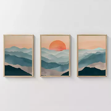 Αναβαθμίστε τον χώρο σας με την αίσθηση της γαλήνης και του φυσικού τοπίου: το Τρίπτυχο Sylis είναι το ιδανικό στοιχείο για να προσδώσετε έναν minimalist, τοπιογραφικό και εκλεπτυσμένο χαρακτήρα στους τοίχους σας. Αυτή η σύνθεση τριών τεμαχίων, ενισχυμένη από ψηφιακές εκτυπώσεις υψηλής ανάλυσης, διαθέτει αφηρημένα μοτίβα που συνδυάζουν ογκώδεις καμπύλες και στυλιζαρισμένες φόρμες βουνού με ρευστά κύματα, δημιουργώντας έναν διακριτικό, ισορροπημένο οπτικό ρυθμό και μία ξεχωριστή αισθητική δήλωση.