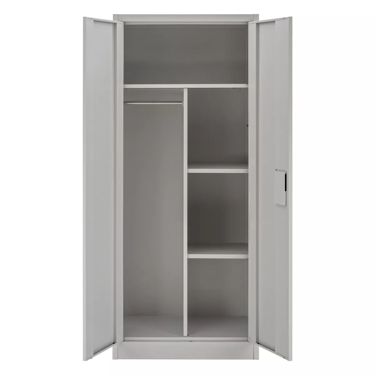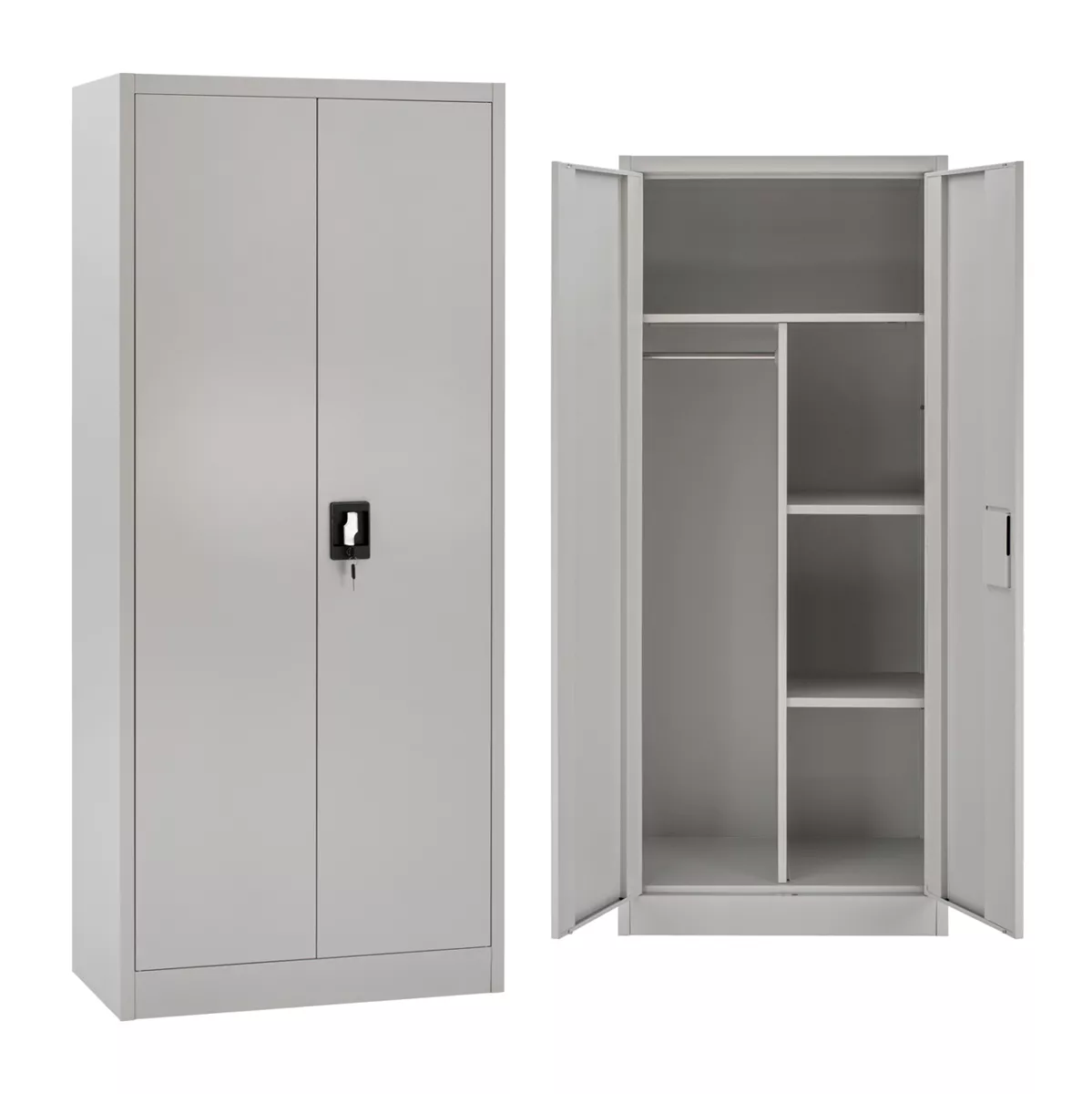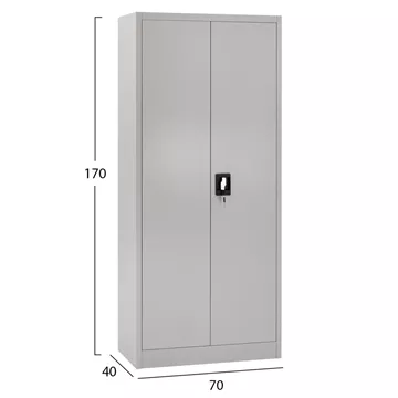 Η δίφυλλη ντουλάπα διαθέτει κλειδαριά ασφαλείας και είναι κατασκευασμένη εξολοκλήρου από μέταλλο με ηλεκτροστατική βαφή, που προστατεύει από φθορές, υγρασία και σκουριά.