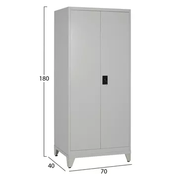 Η ντουλάπα διαθέτει δύο πόρτες με κλειδαριά για ασφαλή φύλαξη αντικειμένων και τρία ρυθμιζόμενα ράφια, ώστε να προσαρμόζεται εύκολα στις ανάγκες σας — ιδανική για εργαλεία, φακέλους, ρούχα ή εξοπλισμό. Επιπροσθέτως, διαθέτει και πόδια ύψους 10 εκατοστών με ρυθμιστές ύψους για εσάς που θέλετε η ντουλάπα να μην «πατάει» απευθείας στο δάπεδο.