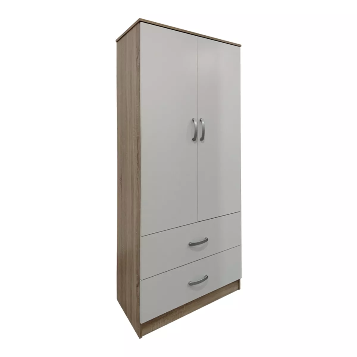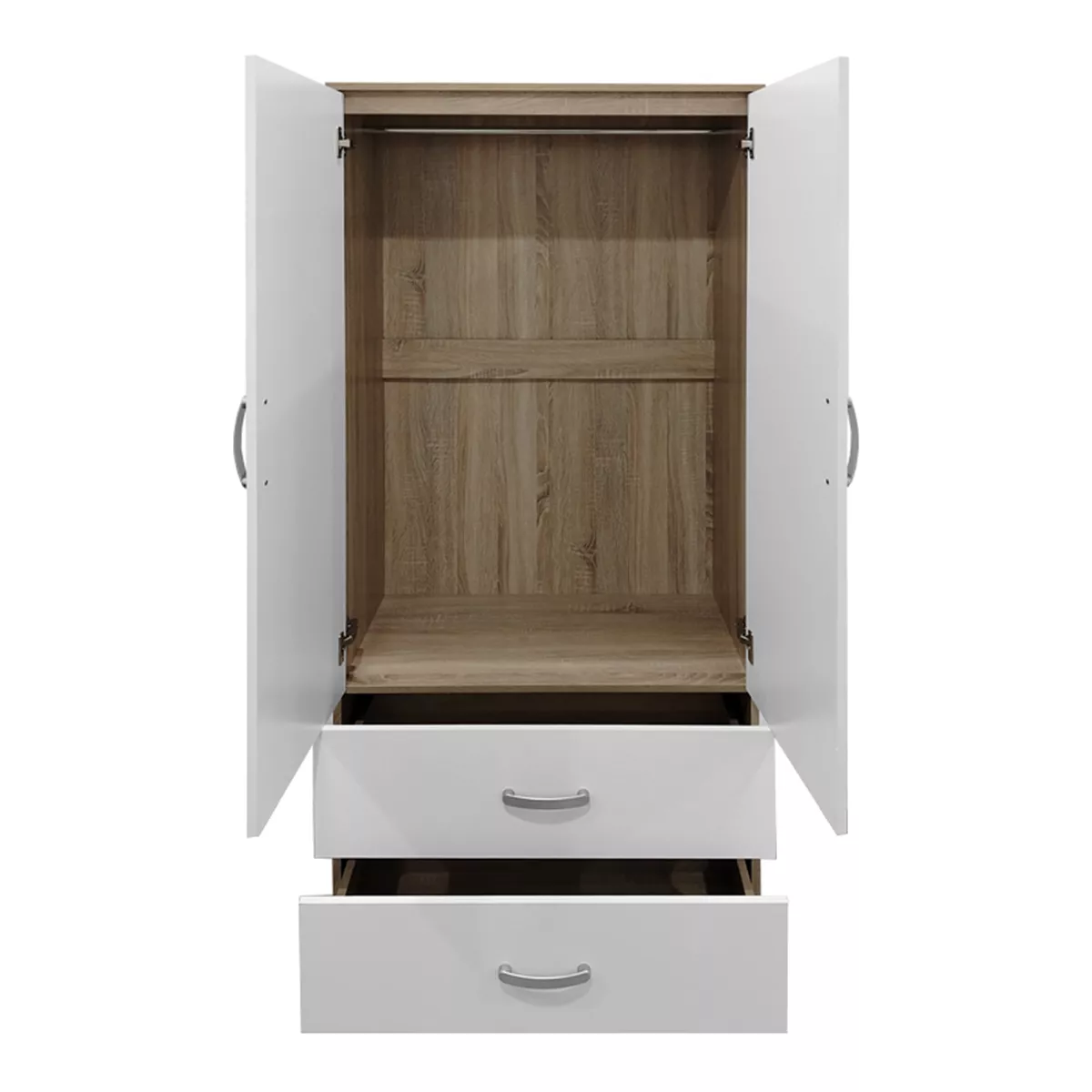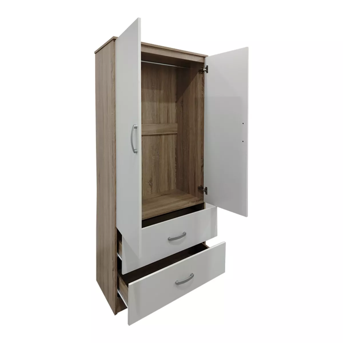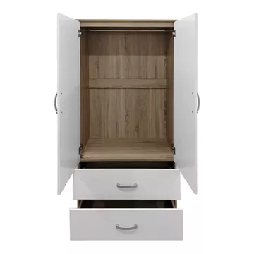 - Περιλαμβάνει δύο πόρτες, εσωτερικά φέρει ράγα για κρεμάστρες ενώ κάτω φέρει δύο μεγάλα συρτάρια για την αποθήκευση ρούχων και αξεσουάρ.