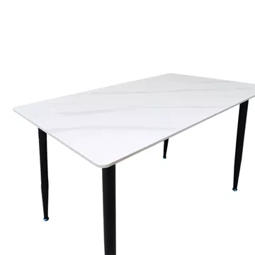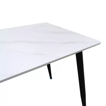 Κομψό Τραπέζι με εφε Επιφάνειας Μαρμάρου και Μεταλλικά ΠόδιαΑναβαθμίστε τον χώρο σας με αυτό το μοντέρνο και λειτουργικό τραπέζι τραπεζαρίας Pembe. Η εντυπωσιακή επιφάνεια σε εφε λευκού μαρμάρου προσδίδει μια αίσθηση πολυτέλειας και φινέτσας, ενώ τα στιλάτα, κωνικά μαύρα μεταλλικά πόδια εξασφαλίζουν σταθερότητα και ανθεκτικότητα.