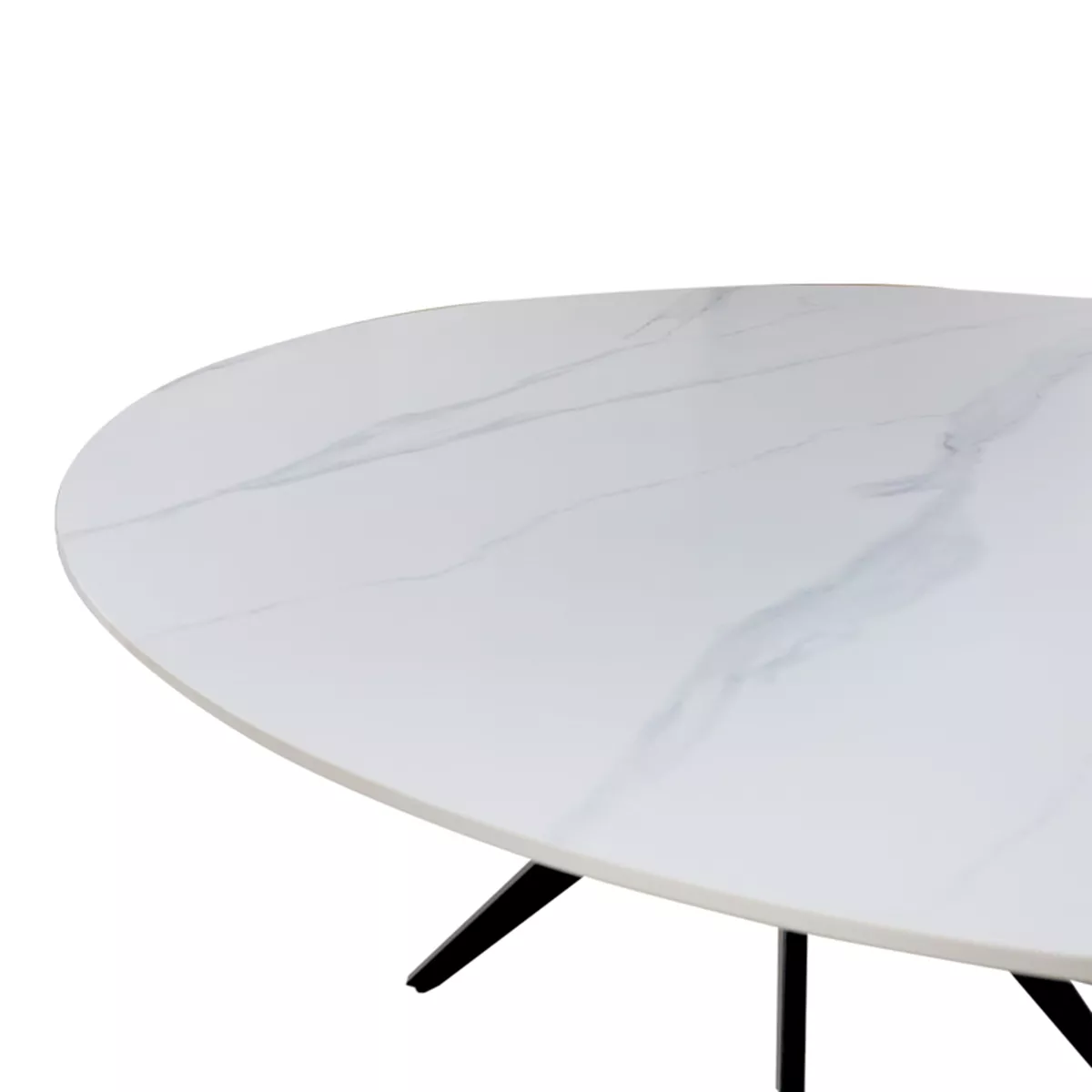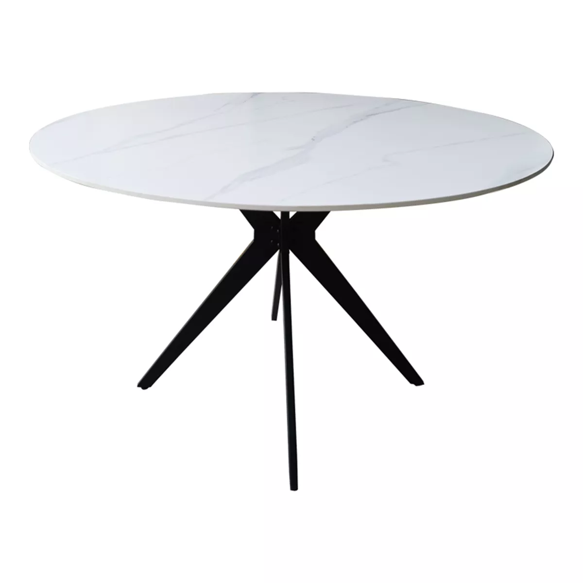 Κομψό Στρογγυλό Τραπέζι Τραπεζαρίας με εφε Μαρμάρου & Καινοτόμα ΒάσηΠροσθέστε μια πινελιά σύγχρονης φινέτσας στον χώρο σας με το εντυπωσιακό στρογγυλό τραπέζι τραπεζαρίας Orbital. Η λευκή επιφάνεια, εμπνευσμένη από την κομψότητα του μαρμάρου, προσφέρει μια φωτεινή αισθητική, ενώ η μοναδική μαύρη μεταλλική βάση με τα διασταυρούμενα πόδια δημιουργεί ένα τολμηρό και αρχιτεκτονικό statement.