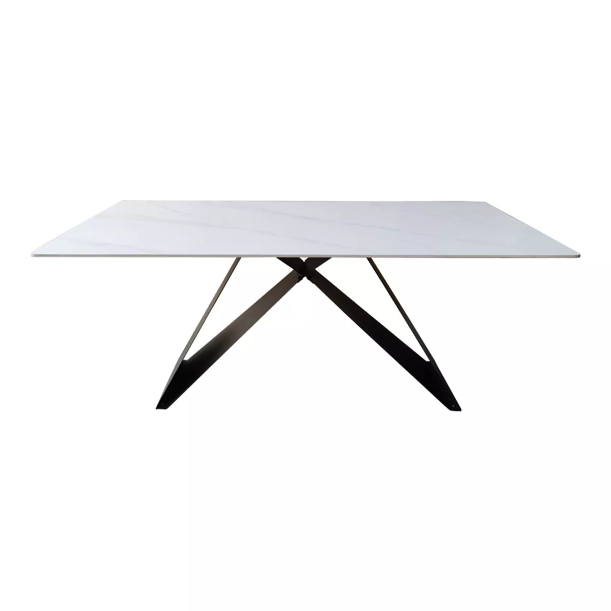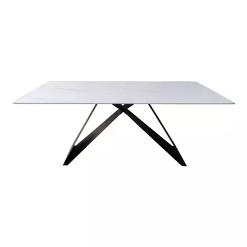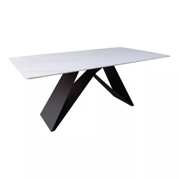 Με την κομψή του επιφάνεια σε λευκό χρώμα όψης μαρμάρου και τη μοντέρνα, γεωμετρική του βάση σε μαύρο χρώμα, αυτό το τραπέζι είναι η επιτομή της σύγχρονης αισθητικής. Ο σχεδιασμός του δεν είναι απλά όμορφος, αλλά και λειτουργικός, προσφέροντας σταθερότητα και αντοχή.