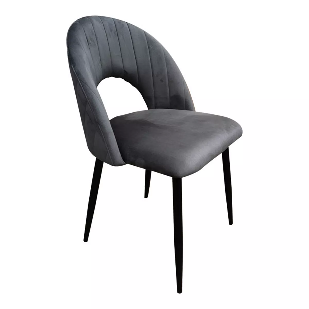 Το μοναδικό της design, με την εργονομική πλάτη που αγκαλιάζει το σώμα και την διακριτική οπή στο κάτω μέρος, προσφέρει όχι μόνο άνεση αλλά και μια ενδιαφέρουσα οπτική λεπτομέρεια που την κάνει να ξεχωρίζει. Τα κομψά, λεπτά μαύρα πόδια ολοκληρώνουν την εμφάνιση, προσδίδοντας μια μοντέρνα και σταθερή βάση.