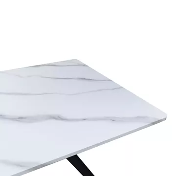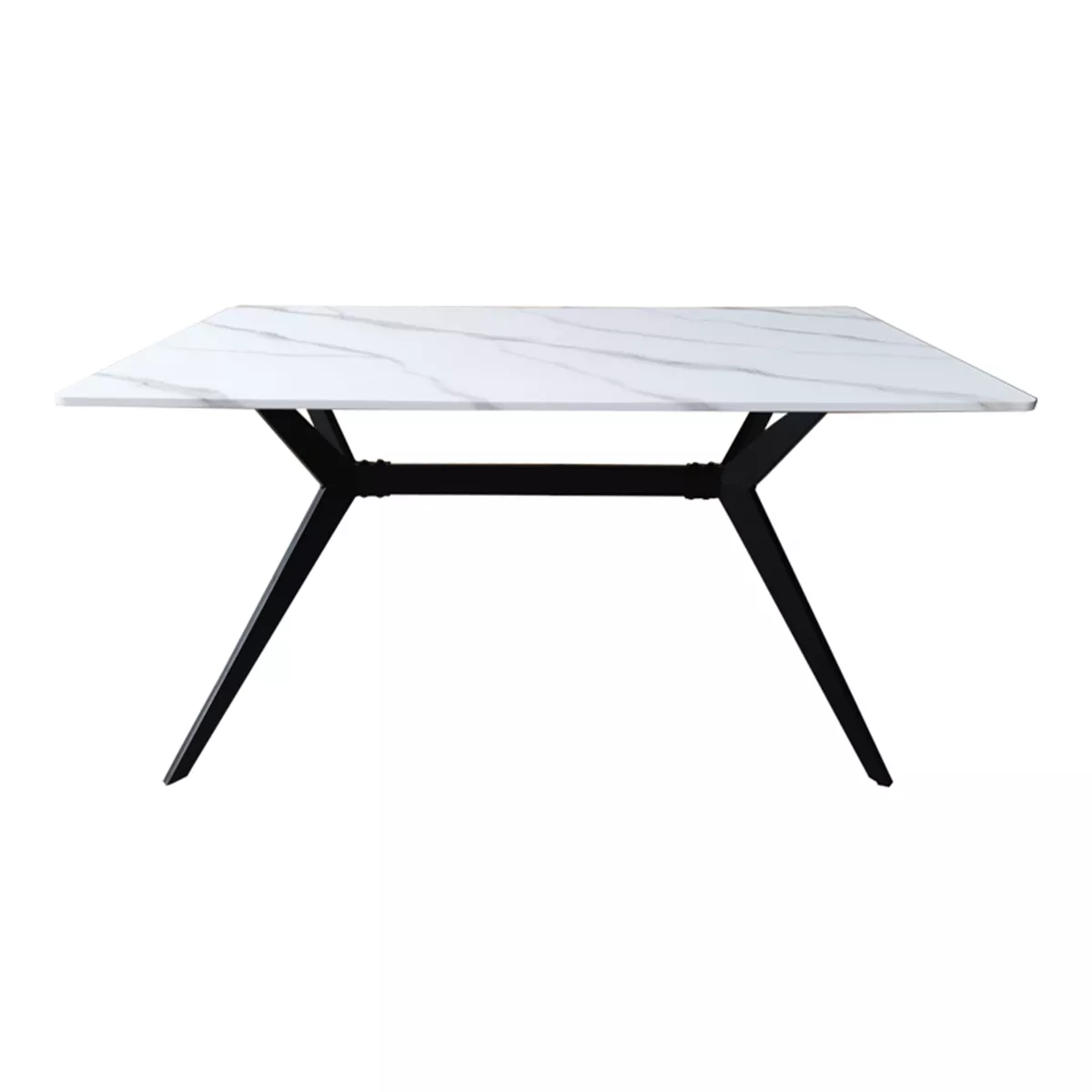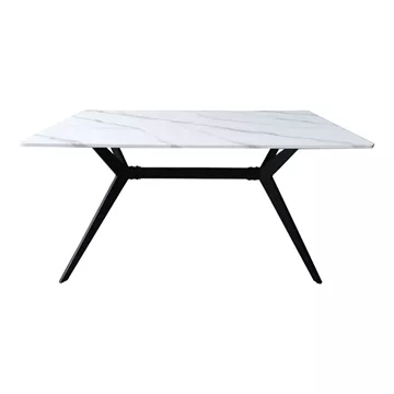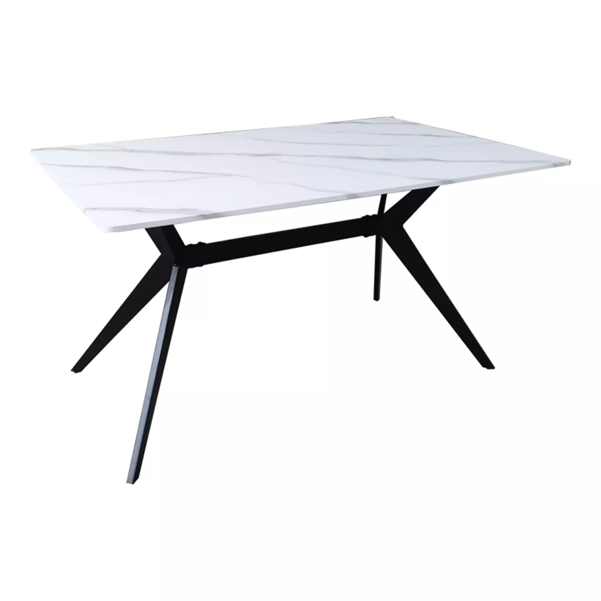 Δώστε στον χώρο σας έναν αέρα μοντέρνας κομψότητας με αυτό το εντυπωσιακό ορθογώνιο τραπέζι Ezali. Η επιφάνεια με την όψη μαρμάρου προσδίδει πολυτέλεια και φυσικότητα, ενώ η τολμηρή, μαύρη μεταλλική βάση με τα διασταυρούμενα πόδια και την κεντρική ενίσχυση, αποτελεί ένα ξεχωριστό αρχιτεκτονικό στοιχείο που μαγνητίζει τα βλέμματα.
