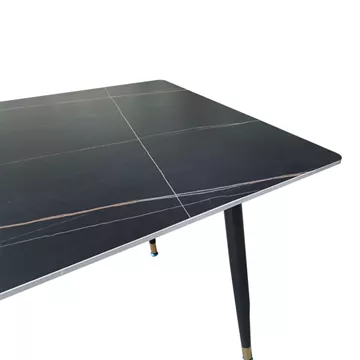Κομψό Τραπέζι με εφε Επιφάνειας Μαρμάρου και Μεταλλικά ΠόδιαΑναβαθμίστε τον χώρο σας με αυτό το μοντέρνο και λειτουργικό τραπέζι τραπεζαρίας Pembe. Η εντυπωσιακή επιφάνεια σε εφε μαύρου μαρμάρου προσδίδει μια αίσθηση πολυτέλειας και φινέτσας, ενώ τα στιλάτα, κωνικά μαύρα μεταλλικά πόδια εξασφαλίζουν σταθερότητα και ανθεκτικότητα.