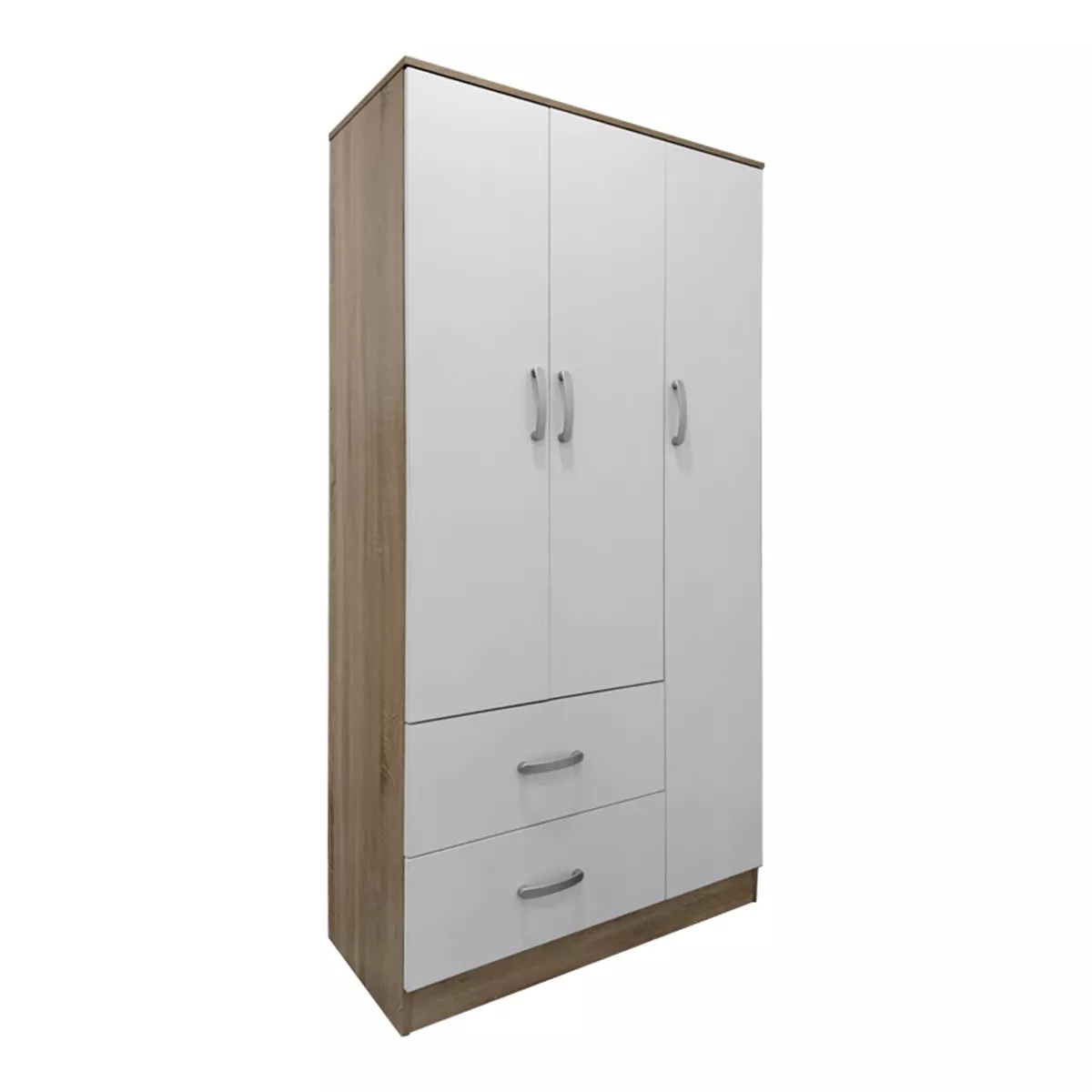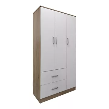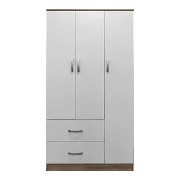 - Περιλαμβάνει τρεις πόρτες, εσωτερικά φέρει ράγα για κρεμάστρες και ράφια ενώ κάτω φέρει δύο μεγάλα συρτάρια για την αποθήκευση ρούχων και αξεσουάρ.