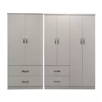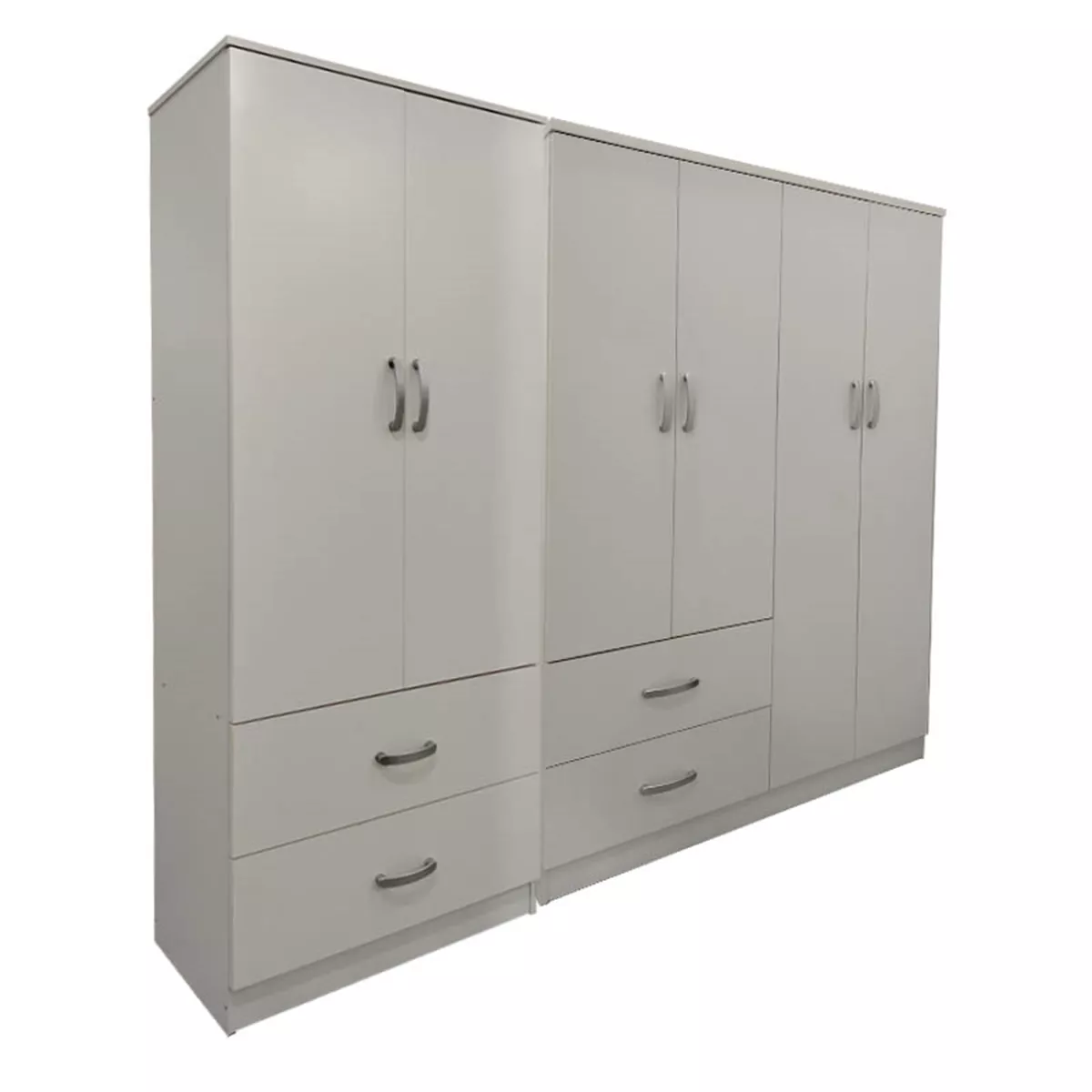 - Περιλαμβάνει έξι πόρτες, εσωτερικά φέρει ράγα για κρεμάστρες και ράφια ενώ κάτω φέρει τέσσερα μεγάλα συρτάρια για την αποθήκευση ρούχων και αξεσουάρ.