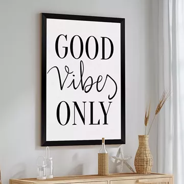 Ο πίνακας Zyra είναι το ιδανικό "feel-good" statement piece για κάθε χώρο. Με το μήνυμα "GOOD VIBES ONLY" τυπωμένο σε μια εντυπωσιακή μίξη μοντέρνων και χειρόγραφων γραμματοσειρών, φέρνει αμέσως μια θετική και ανάλαφρη διάθεση. Το κλασικό ασπρόμαυρο design του τον καθιστά εξαιρετικά ευέλικτο, ταιριάζοντας άψογα σε σκανδιναβική, minimal ή ακόμα και boho διακόσμηση.