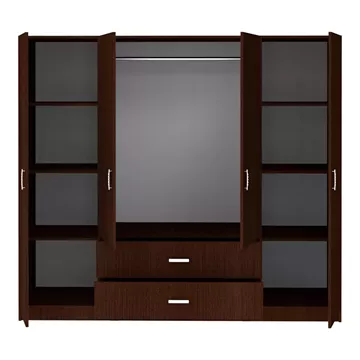 - Στο εσωτερικό περιλαμβάνει μεταλλική βέργα για κρεμάστρες και πολλαπλά ράφια.