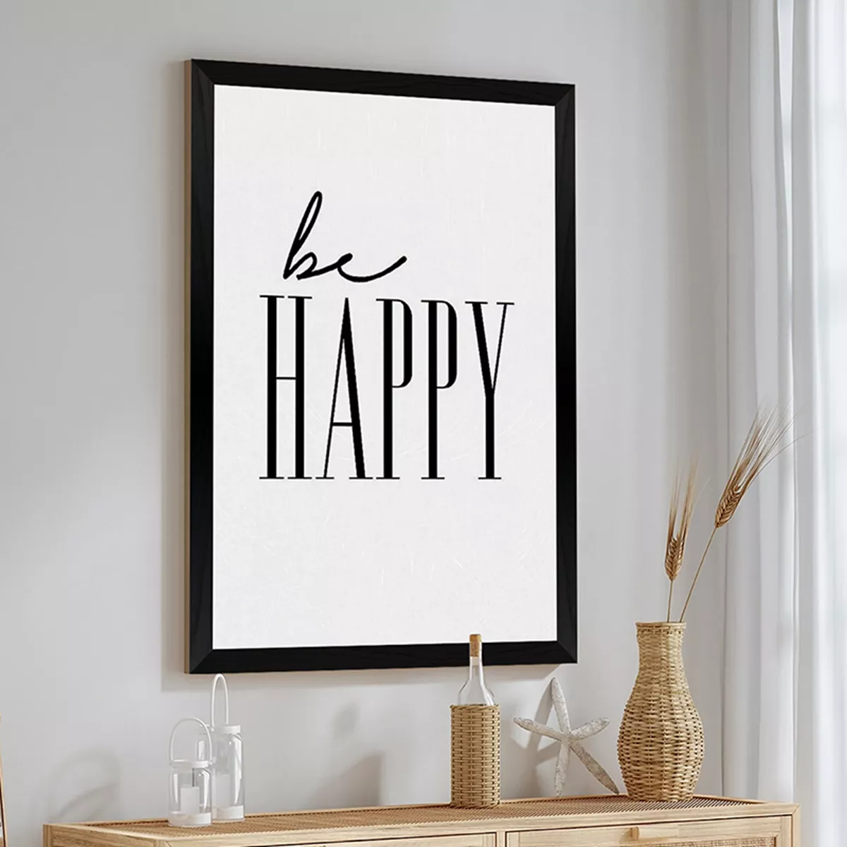 Ο πίνακας Jovia είναι μια καθημερινή υπενθύμιση για τη σημασία της χαράς. Με το απλό αλλά δυνατό μήνυμα "be HAPPY" αποτυπωμένο σε μια δυναμική μίξη γραμματοσειρών, προσθέτει αμέσως μια αισιόδοξη και σύγχρονη νότα στον χώρο. Το έντονο ασπρόμαυρο design τον καθιστά ευέλικτο και ιδανικό για να δώσετε χαρακτήρα στο δωμάτιο ή το γραφείο.