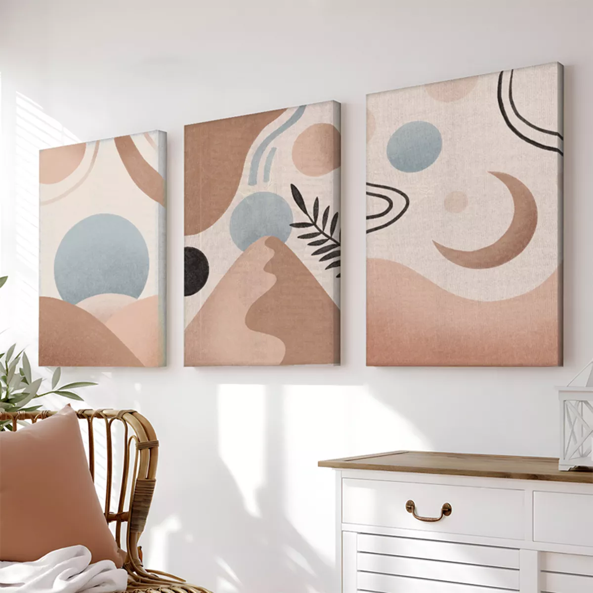 Μετατρέψτε τον τοίχο σας σε έργο τέχνης με τον τριπτυχικό πίνακα Leberto. Φέρνει τη ζεστασιά της φύσης και την ηρεμία του αφηρημένου στυλ στον χώρο σας. Είναι η ιδανική προσθήκη για σαλόνια, υπνοδωμάτια ή γραφεία που αναζητούν μια μινιμαλιστική, boho ή scandi πινελιά.