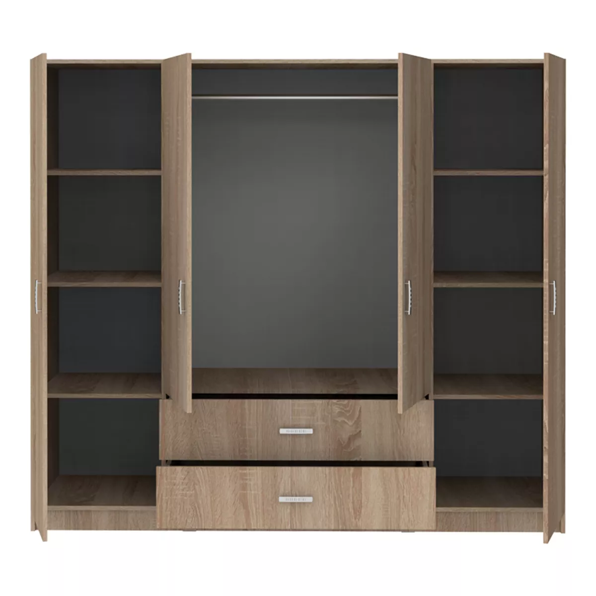 - Στο εσωτερικό περιλαμβάνει μεταλλική βέργα για κρεμάστρες και πολλαπλά ράφια.