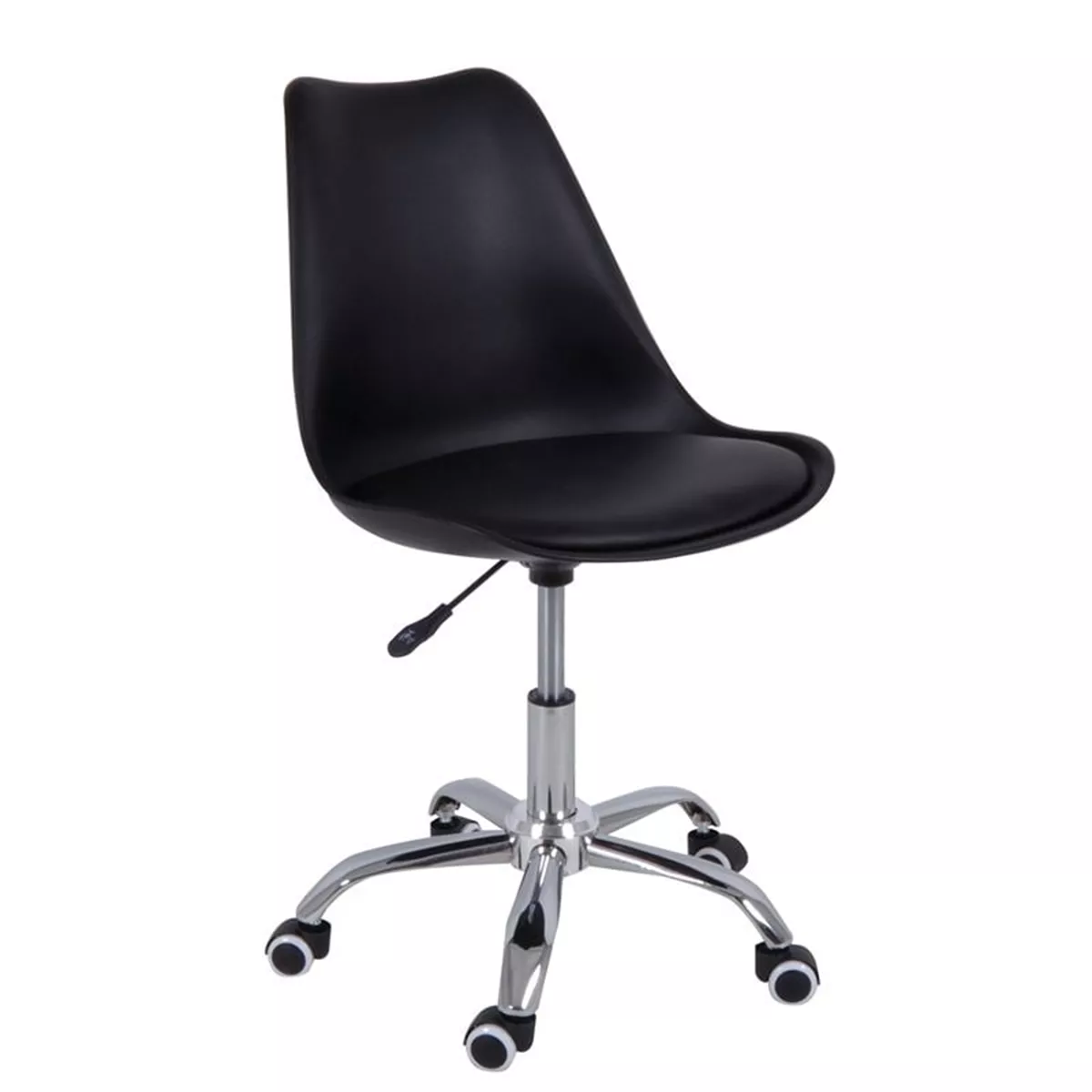 MARTIN-W Καρέκλα Γραφείου, Βάση Χρώμιο, PP & Pu Μαύρο, Μονταρισμένη Ταπετσαρία