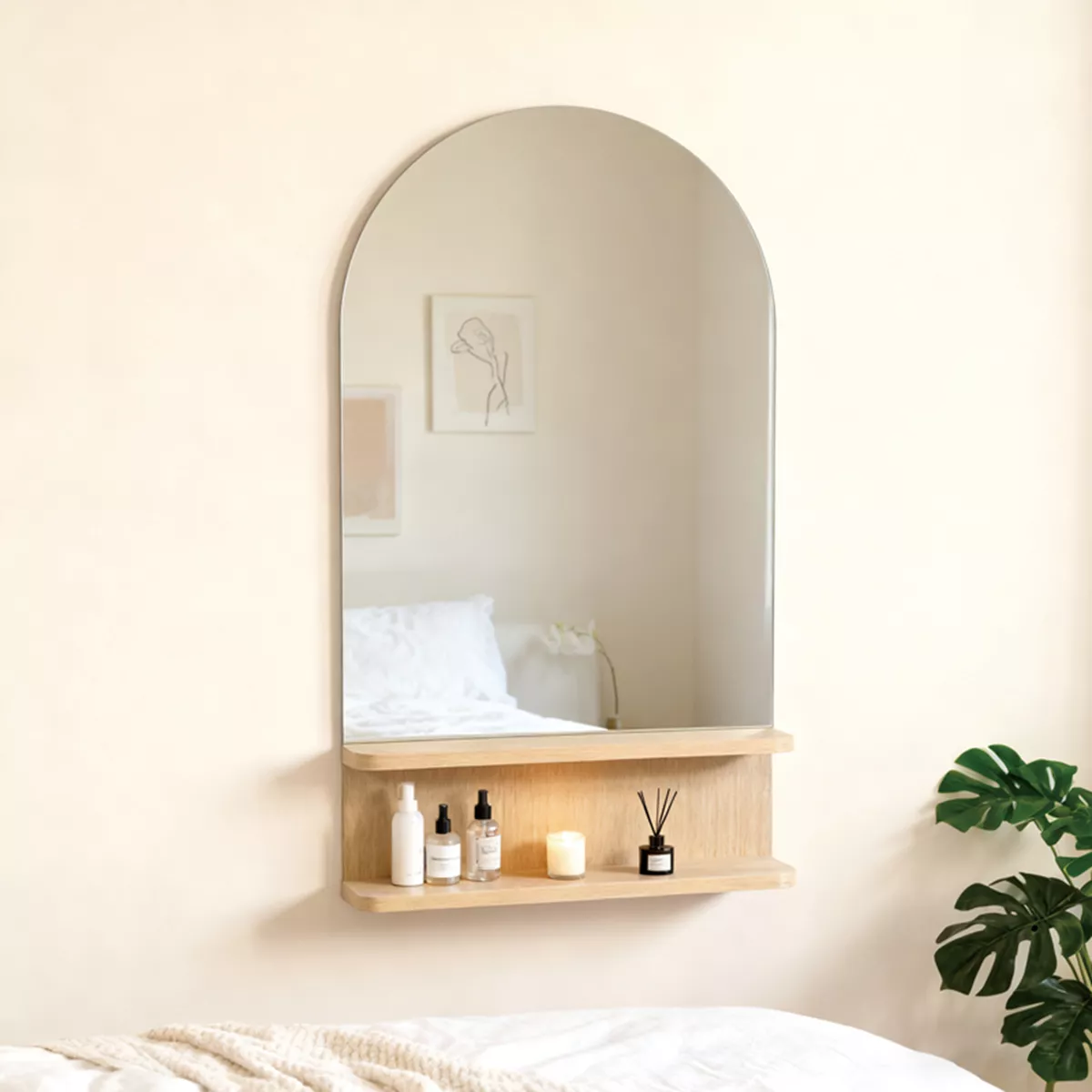 - Τα ενσωματωμένα ράφια προσφέρουν αποθηκευτικό χώρο για τα αγαπημένα σου προϊόντα ομορφιάς ή διακοσμητικά αντικείμενα.