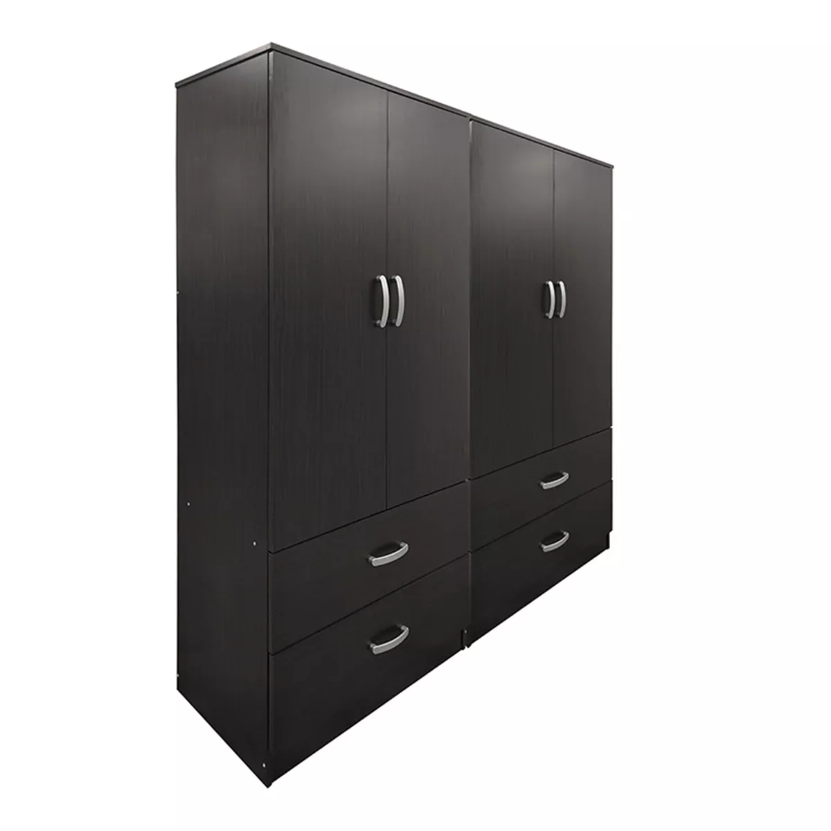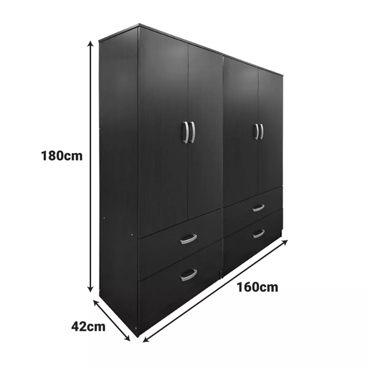 - Περιλαμβάνει τέσσερις πόρτες, εσωτερικά φέρει ράγα για κρεμάστρες ενώ κάτω φέρει τέσσερα μεγάλα συρτάρια για την αποθήκευση ρούχων και αξεσουάρ.