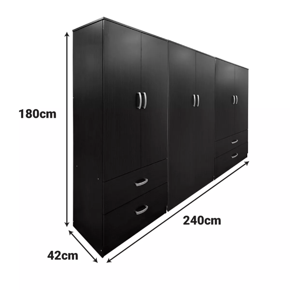 - Περιλαμβάνει εξι πόρτες, εσωτερικά φέρει ράγα για κρεμάστρες ενώ κάτω φέρει τέσσερα μεγάλα συρτάρια για την αποθήκευση ρούχων και αξεσουάρ.