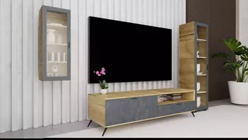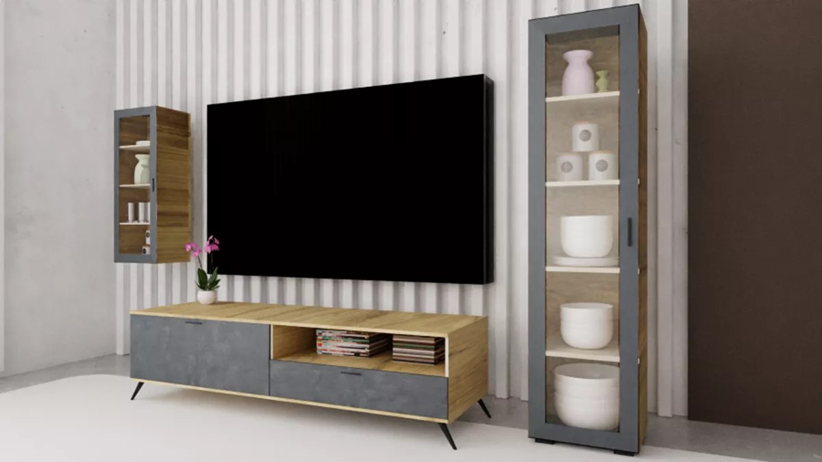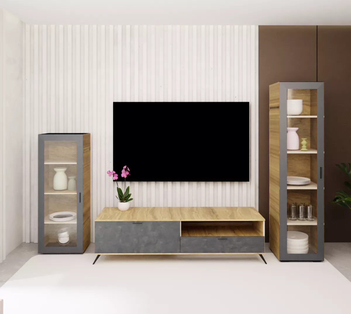 <p data-start="843" data-end="1073">Η σύνθεση είναι κατασκευασμένη από υψηλής ποιότητας μελαμίνη, με ανθεκτικότητα στον χρόνο και τη χρήση, ενώ το χρώμα μελί σε συνδυασμό με τη μαύρη πέτρα δημιουργεί ένα ιδιαίτερο και σύγχρονο αποτέλεσμα που αναβαθμίζει κάθε σαλόνι.</p>