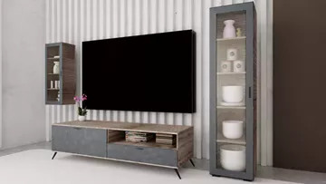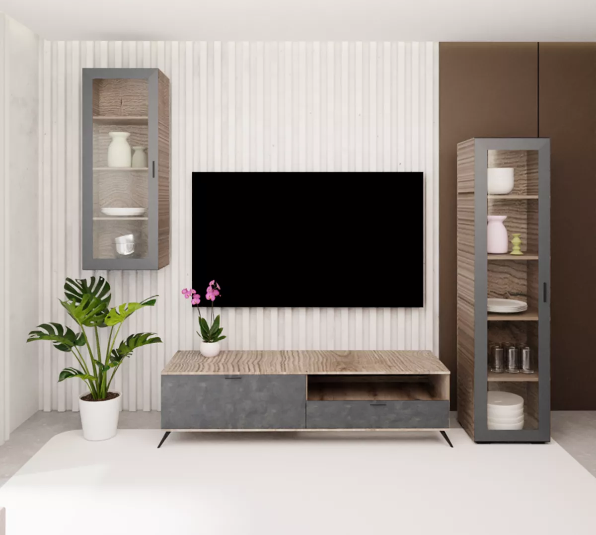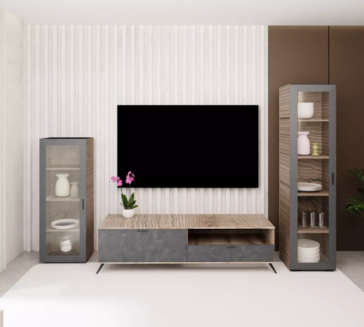 <p data-start="843" data-end="1073">Η σύνθεση είναι κατασκευασμένη από υψηλής ποιότητας μελαμίνη, με ανθεκτικότητα στον χρόνο και τη χρήση, ενώ το χρώμα μελί σε συνδυασμό με τη μαύρη πέτρα δημιουργεί ένα ιδιαίτερο και σύγχρονο αποτέλεσμα που αναβαθμίζει κάθε σαλόνι.</p>